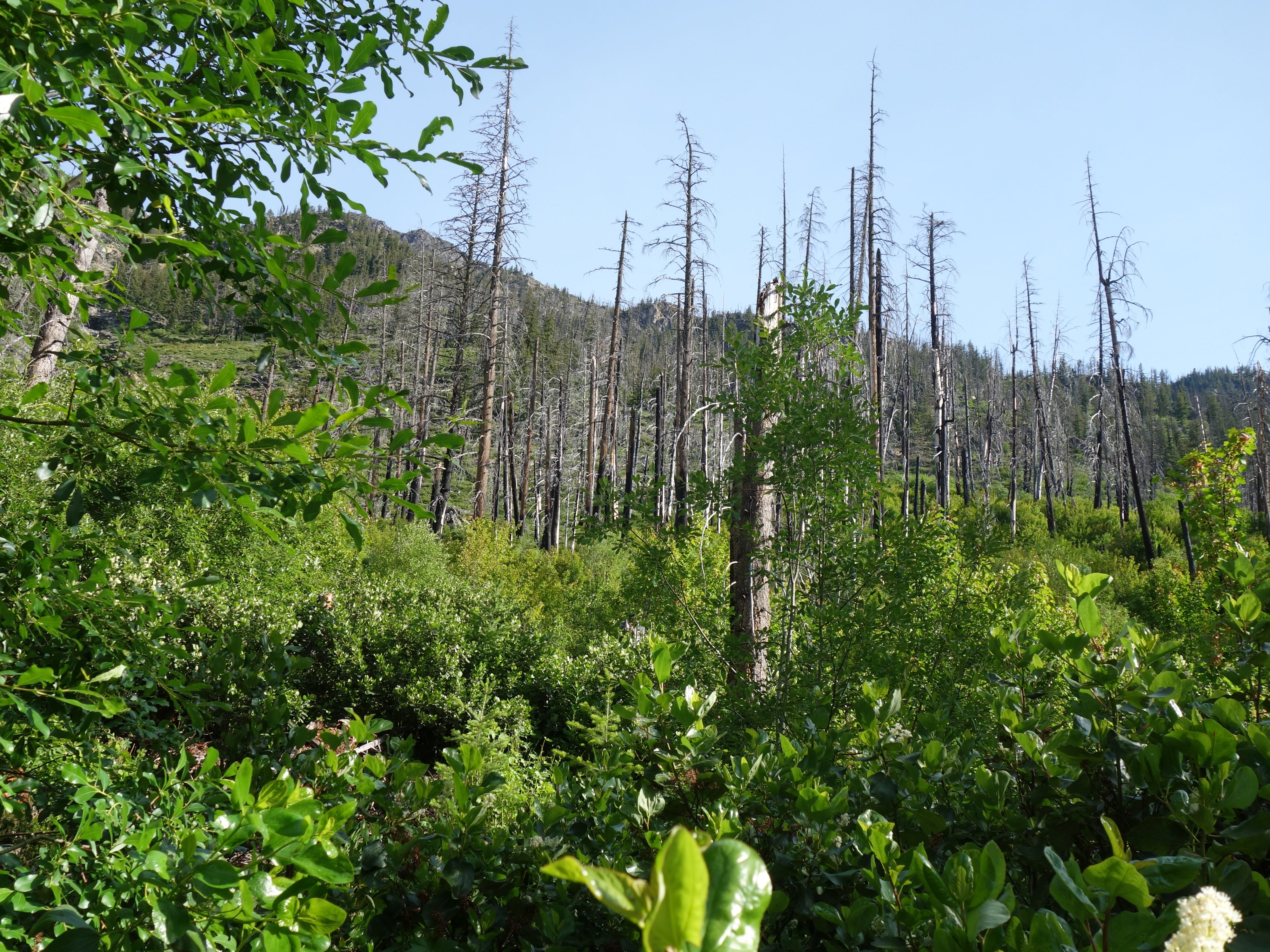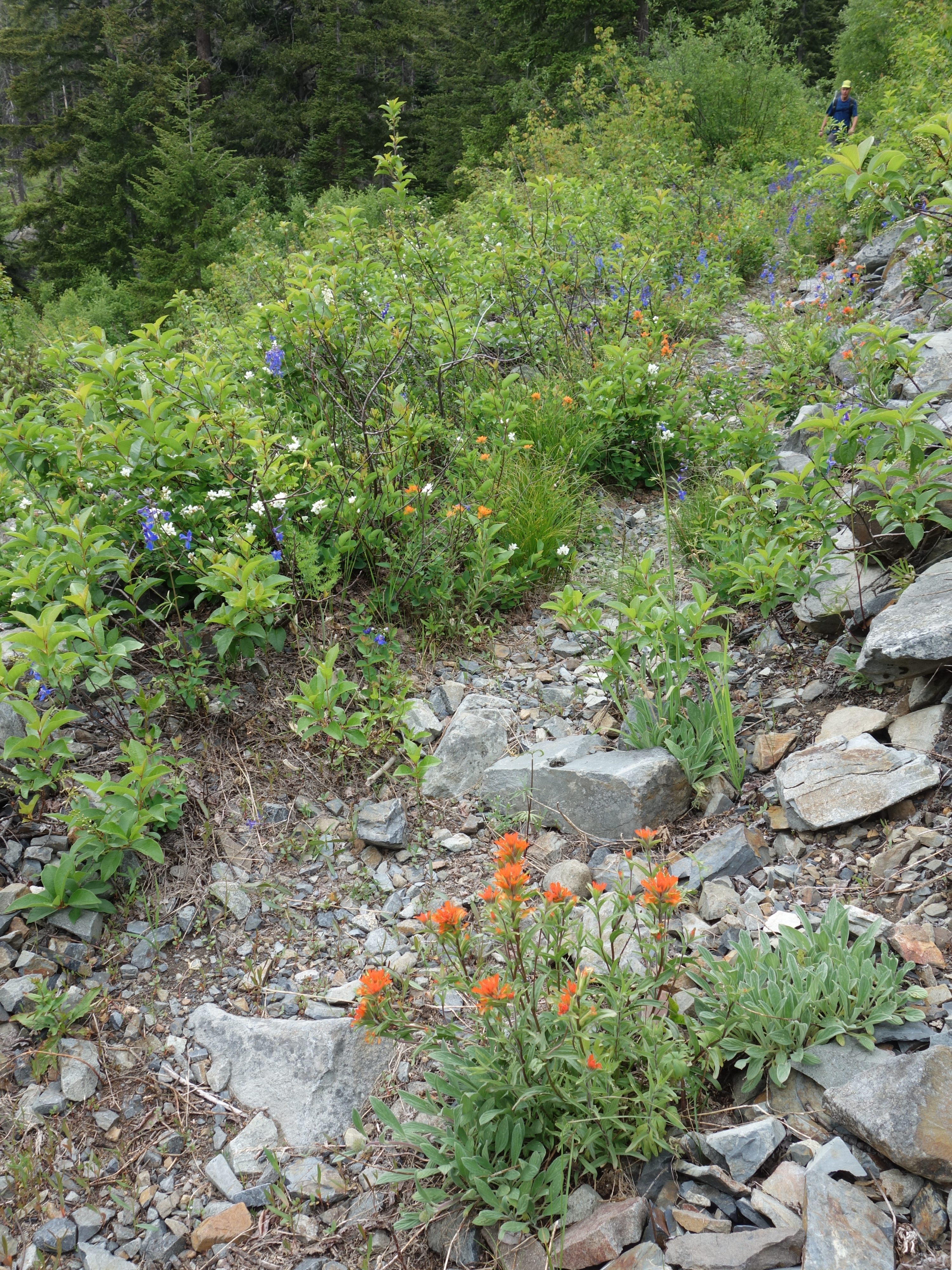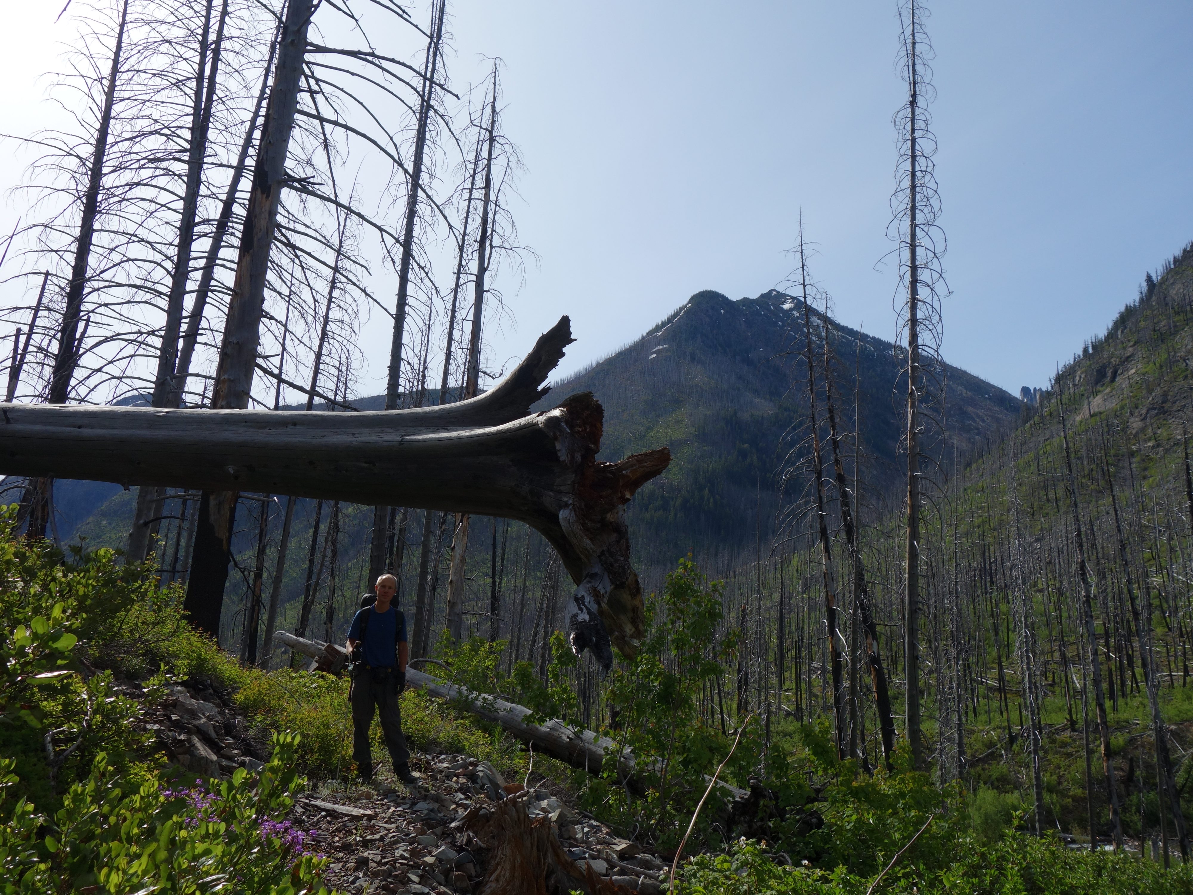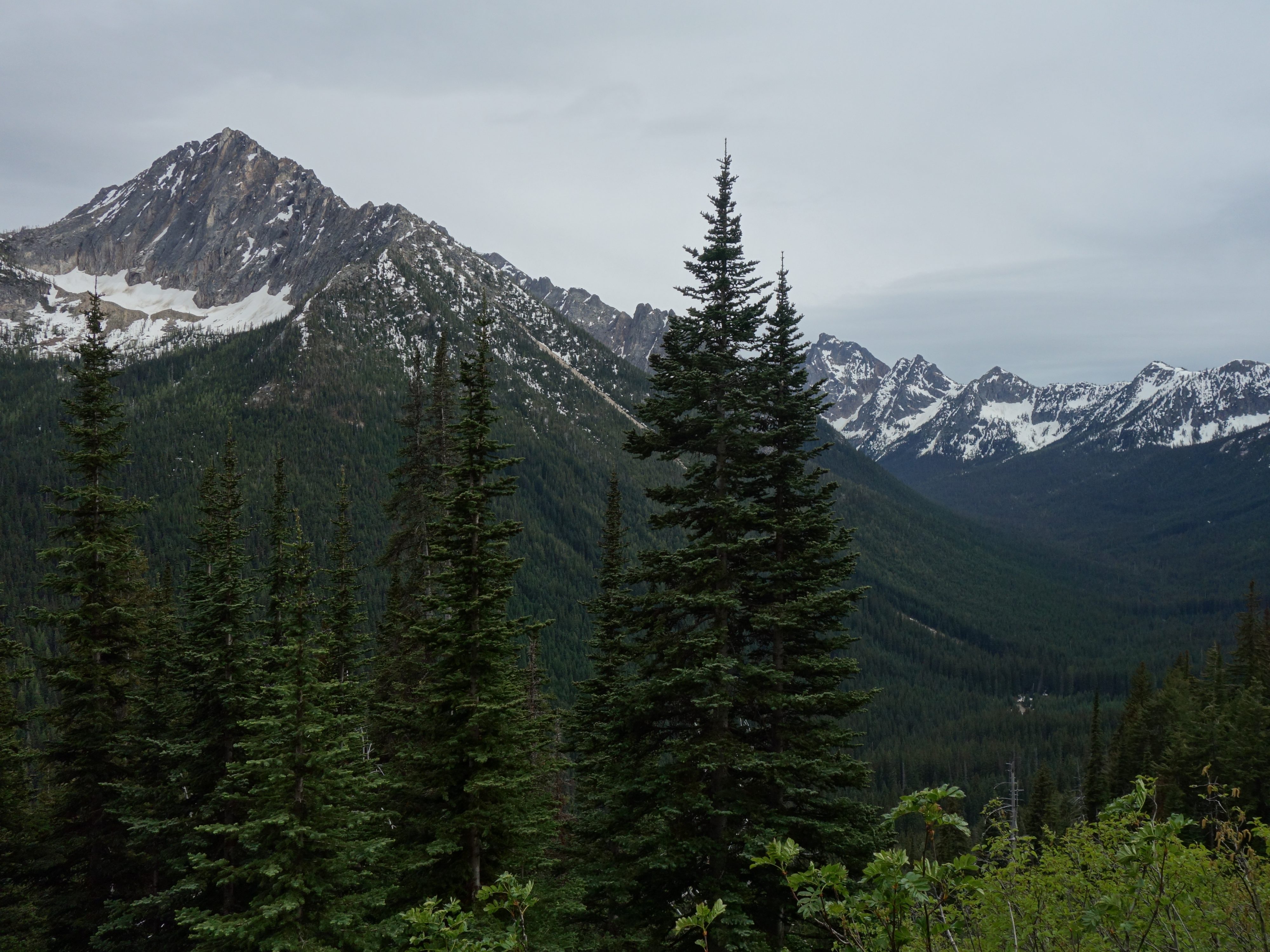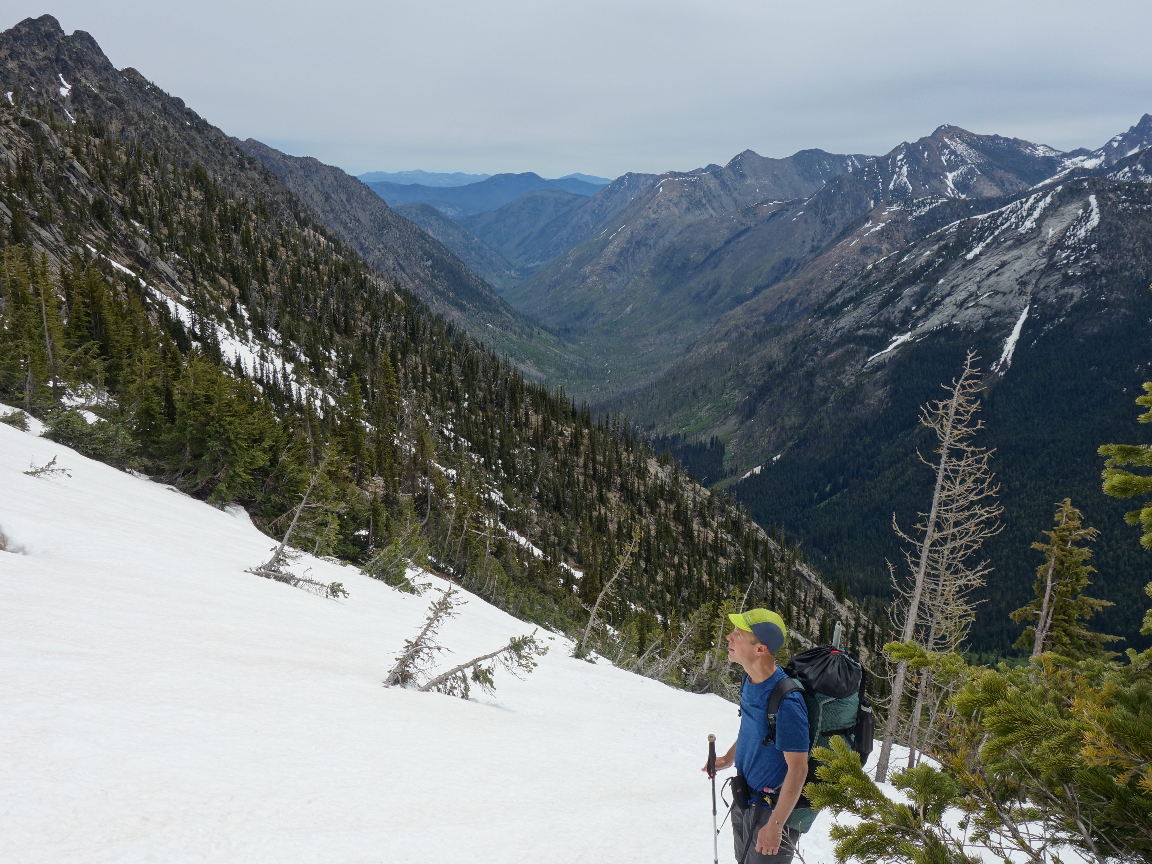 We left with bikes at 5:30am to perfectly clear skies, and started biking up the Methow River trail. However there is a bridge washout just 2.5 miles from the trailhead. The bridge over Trout Creek is gone. Despite the ranger sign at the trailhead stating the creek is impassible, we were able to either wade across (knee deep) or shimmy across on a log we spotted. We both made it across unscathed, however we had to leave the bikes as we couldn't take them across. Good thing though, as the next 5 miles of the trail is shitfucked.... impossible to bike, and horrible to walk on. The trail is totally overgrown with alders requiring constant schwacking, and many leg/arm scratches. Also it was difficult, sometimes very difficult to follow the trail; complete with dozens of large blowdowns. We went into this expecting to be able to bike all the way to the PCT, however this trail will probably never be biked again, and likely won't see many hikers either. Seems the Okanogan FS is unfortunately is letting it go, which is a real shame because it was such a major trail. Needless to say it took us 4.5 hours to go from the trailhead to intersect the PCT at Brush Creek.