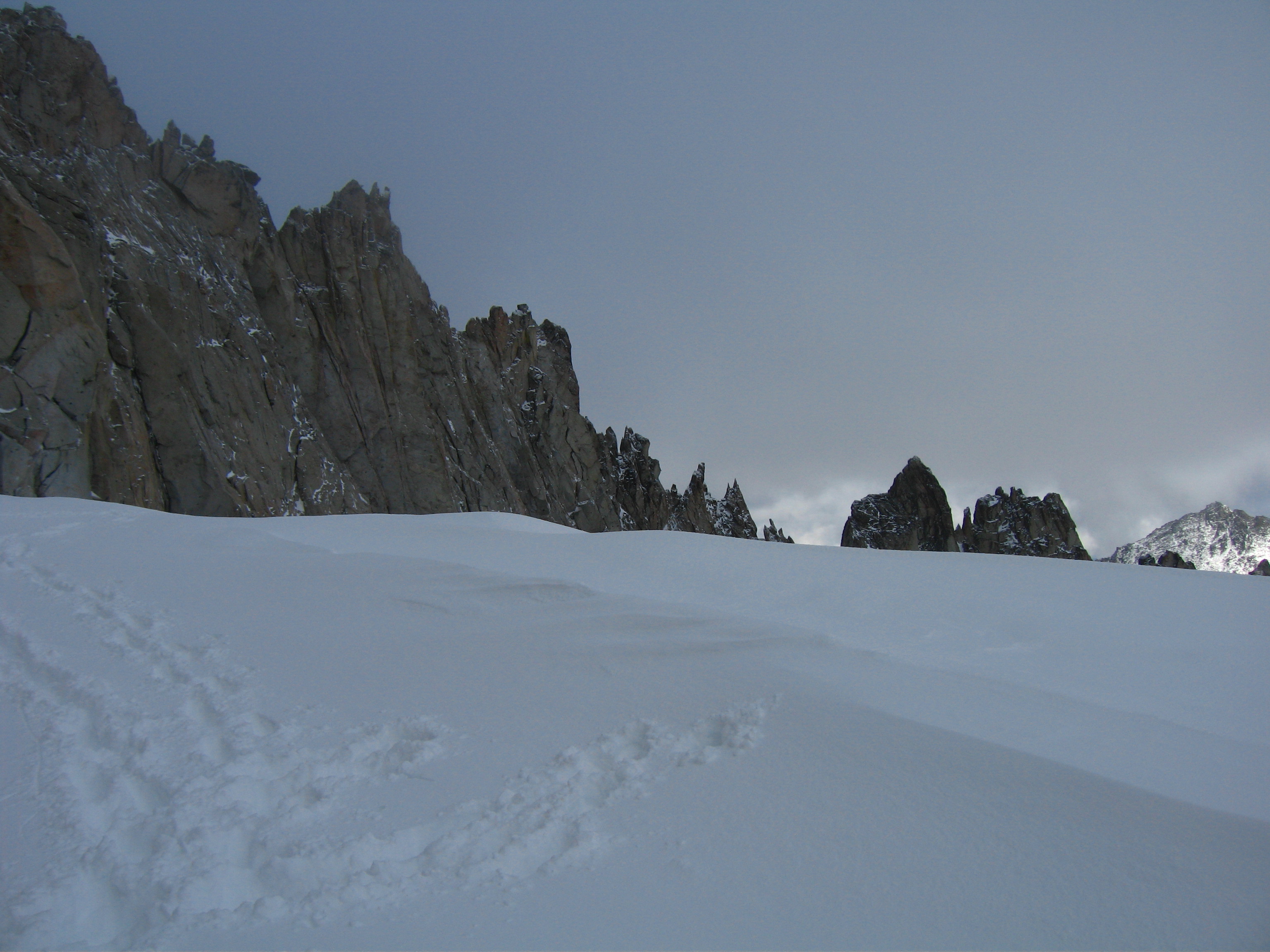 Gaitors were a huge plus and microspikes might help but I didn't use them. About a foot of fresh snow covered the hard icy remnant snow that is the permanent snowfield on the way up Dragontail above the pass.