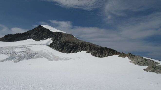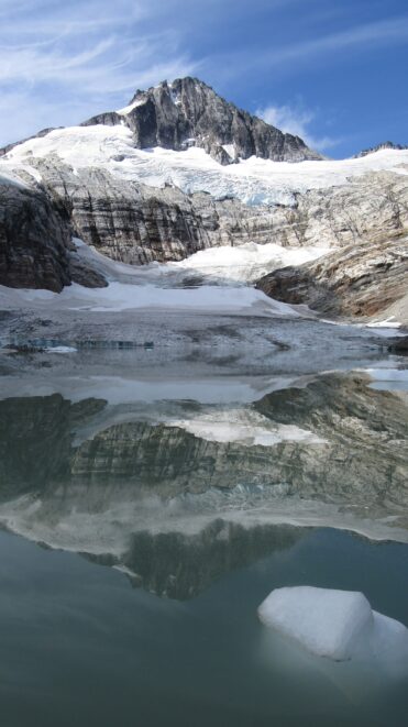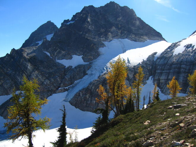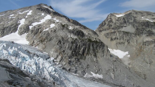 These two photos below show how much snow/ice really has disappeared only in a 3 year period! These are photos from a point above Borelis Lake en-route to the north side of Primus Peak.