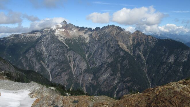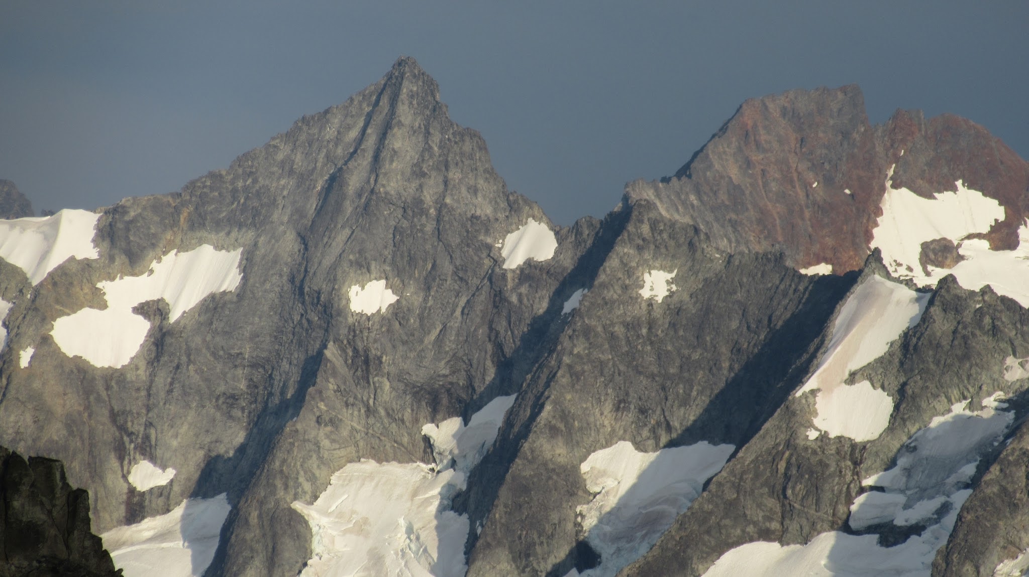 The first one was taken in October 2012, when I hiked up that steep ridge separating Thunder and McAllister creeks but was forced to turn around on the north ridge of Primus 500 feet shy of the summit as the terrain became too difficult for me to solo at the time.