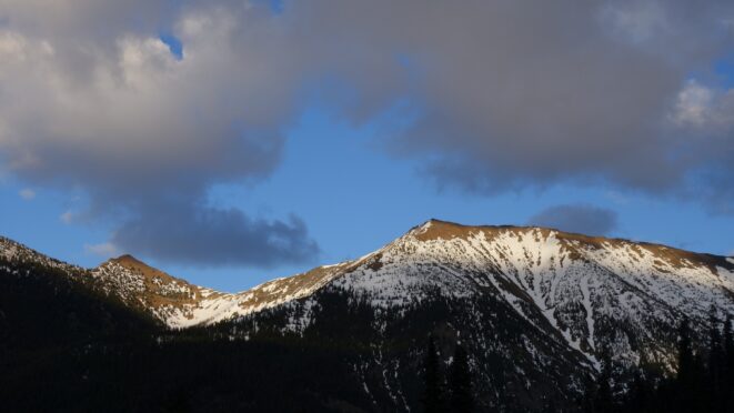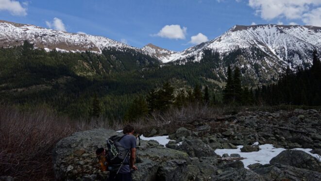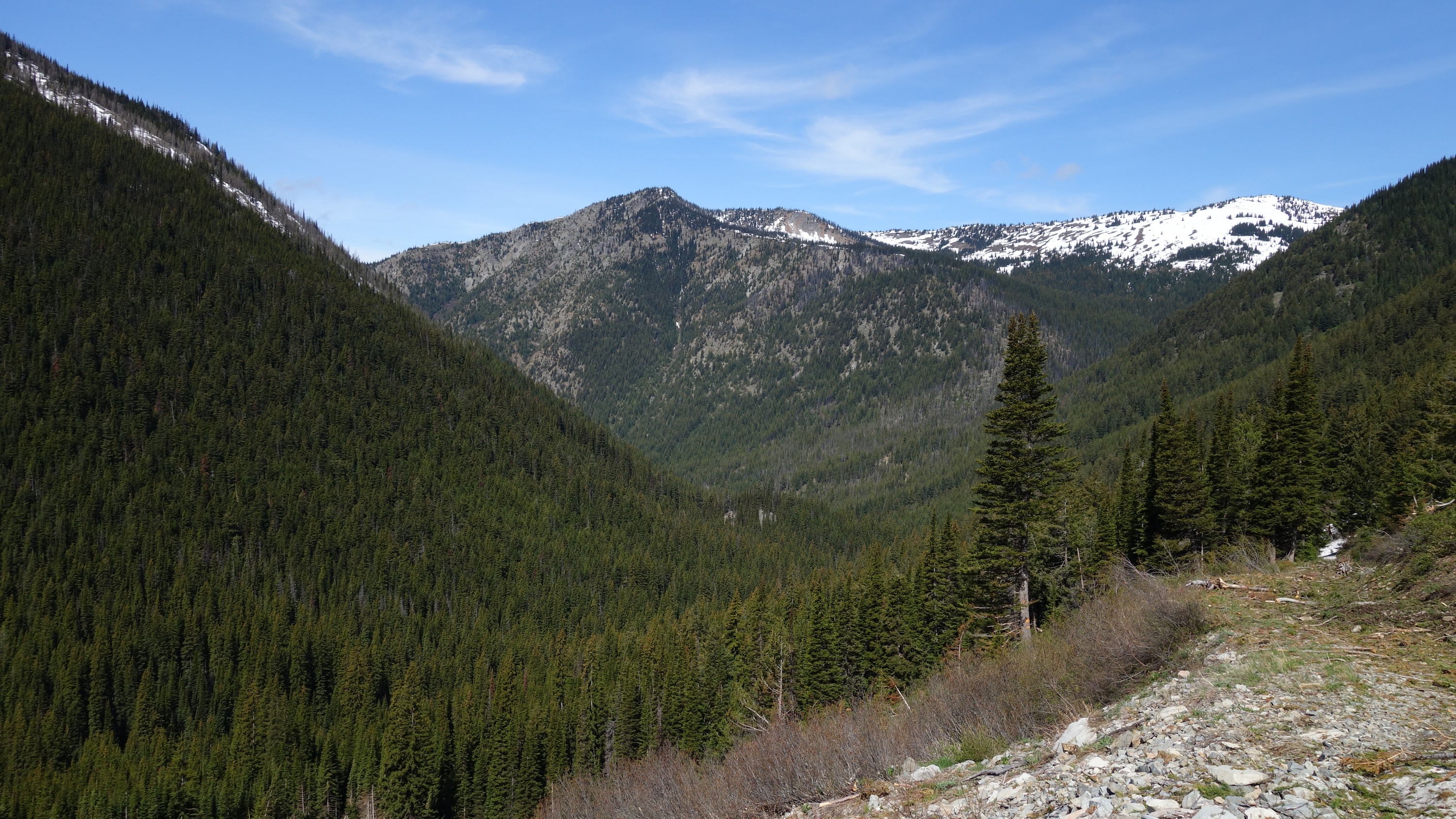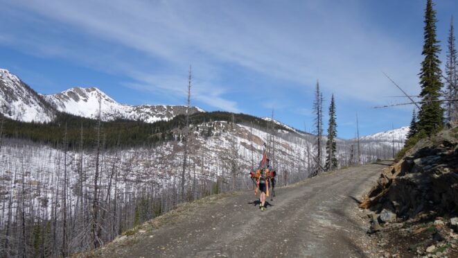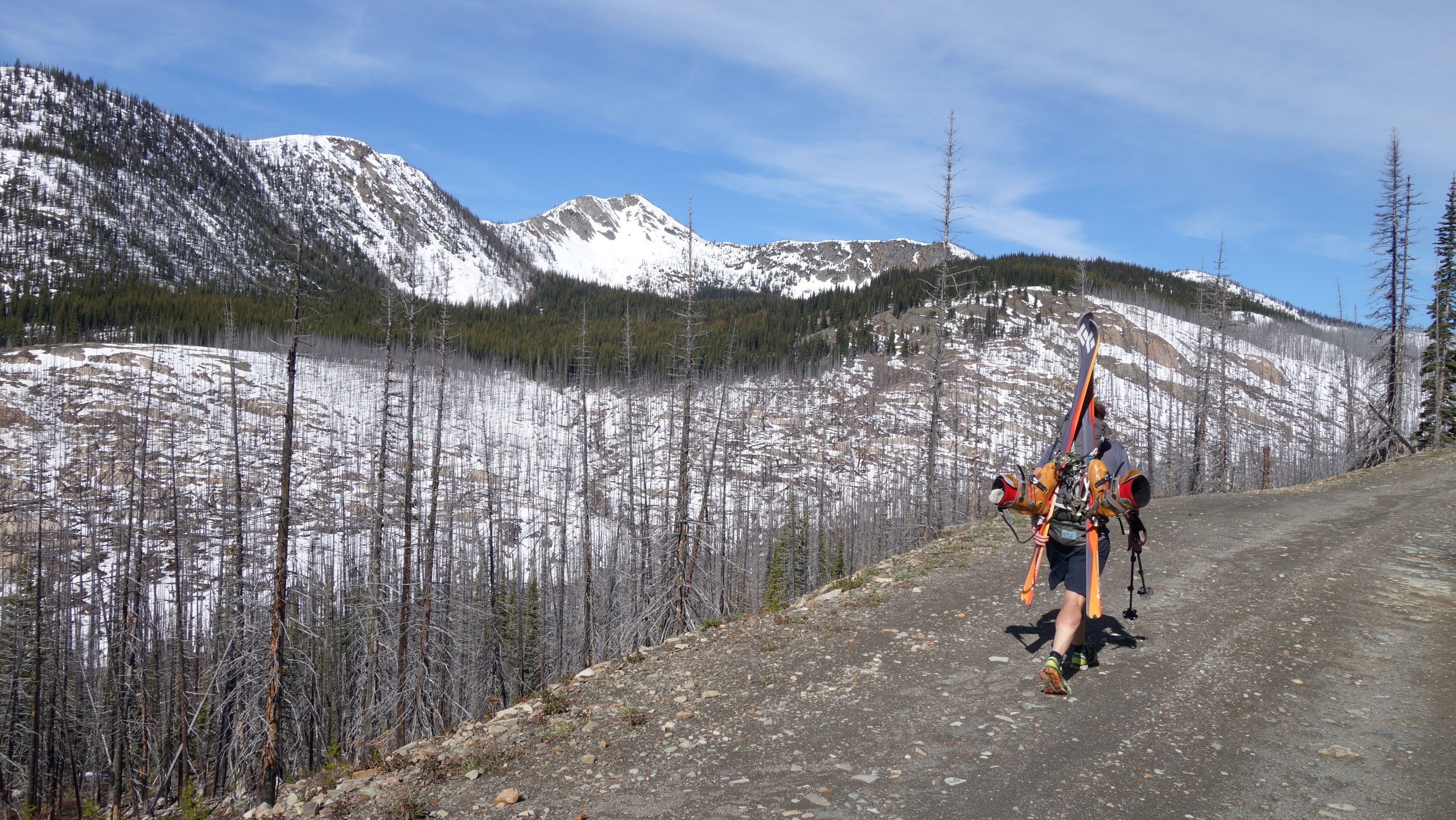 Unfortunately we would only get about a mile, back down to about 5200 feet before the snow disappeared, and we ditched the skis. For the next 4.5 miles, the walk on the Slate Creek Road down to the gate at 3800 feet was quick and dry. A fair amount of debris and trees/rocks was on the road so if anyone plans to drive down this way shortly after the snow melts, bring a chainsaw and an attitude for ground clearing.