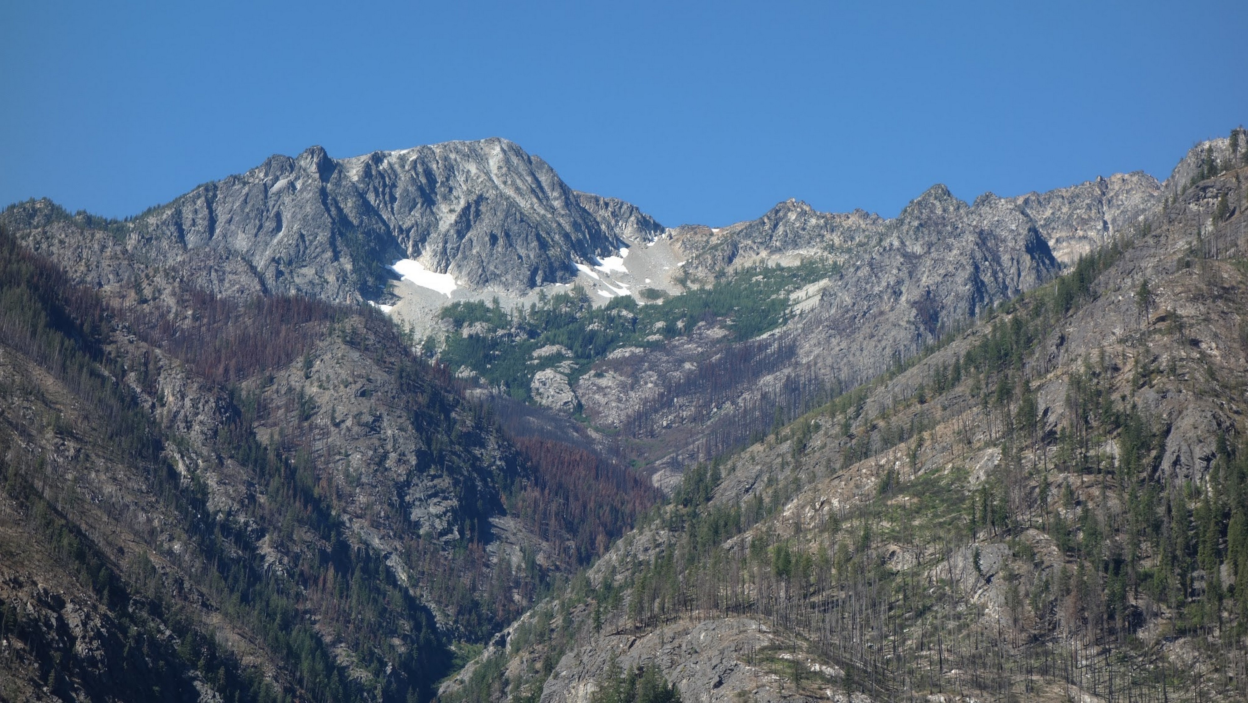 For the third day, Josh and I decided to bail on all the ideas we had for trying to squeeze in either Buckner or Logan and simply make a very fast descent back to Stehekin and try to catch the fast boat for its noon departure back to Chelan. Our return tickets were for Friday but we were ready to head out so we woke up at 5:30 and began descending at 5:50. It was a long 3,500 foot descent to the Park Creek Trail, over mostly talus until we reached the burnt forest around 5,700 feet. From this point it was a very dusty, ash filled descent down the steep climbers trail. We then proceeded to walk fast/run the 4 miles down the Park Creek trail, then walk an additional 1.5 miles east on the old road back to the Bridge Creek trailhead where our bikes were stashed. We reached the bikes at 9:35 and began the long 15.5 mile bike ride to Stehekin After passing through the short trail section, the riding was very fast especially for me on my road bike. I reached the bakery (1.6 miles from Stehekin) at 11:20, and realized I had plenty of time to stop in for some ice cream, cookies, and soda.