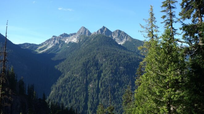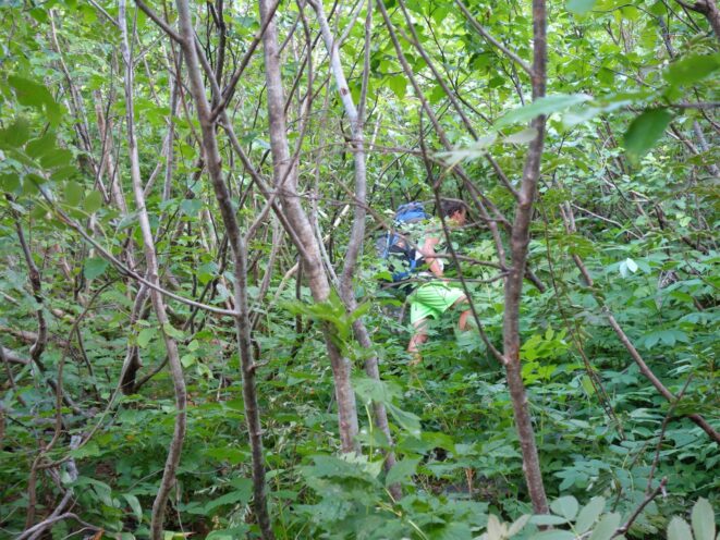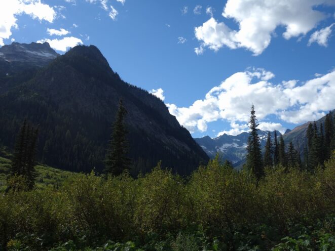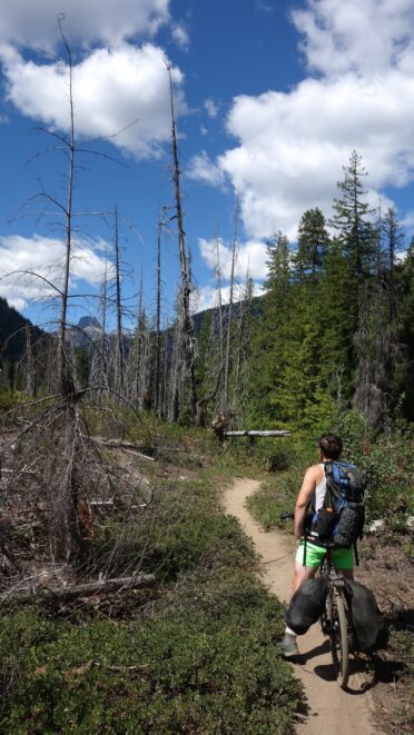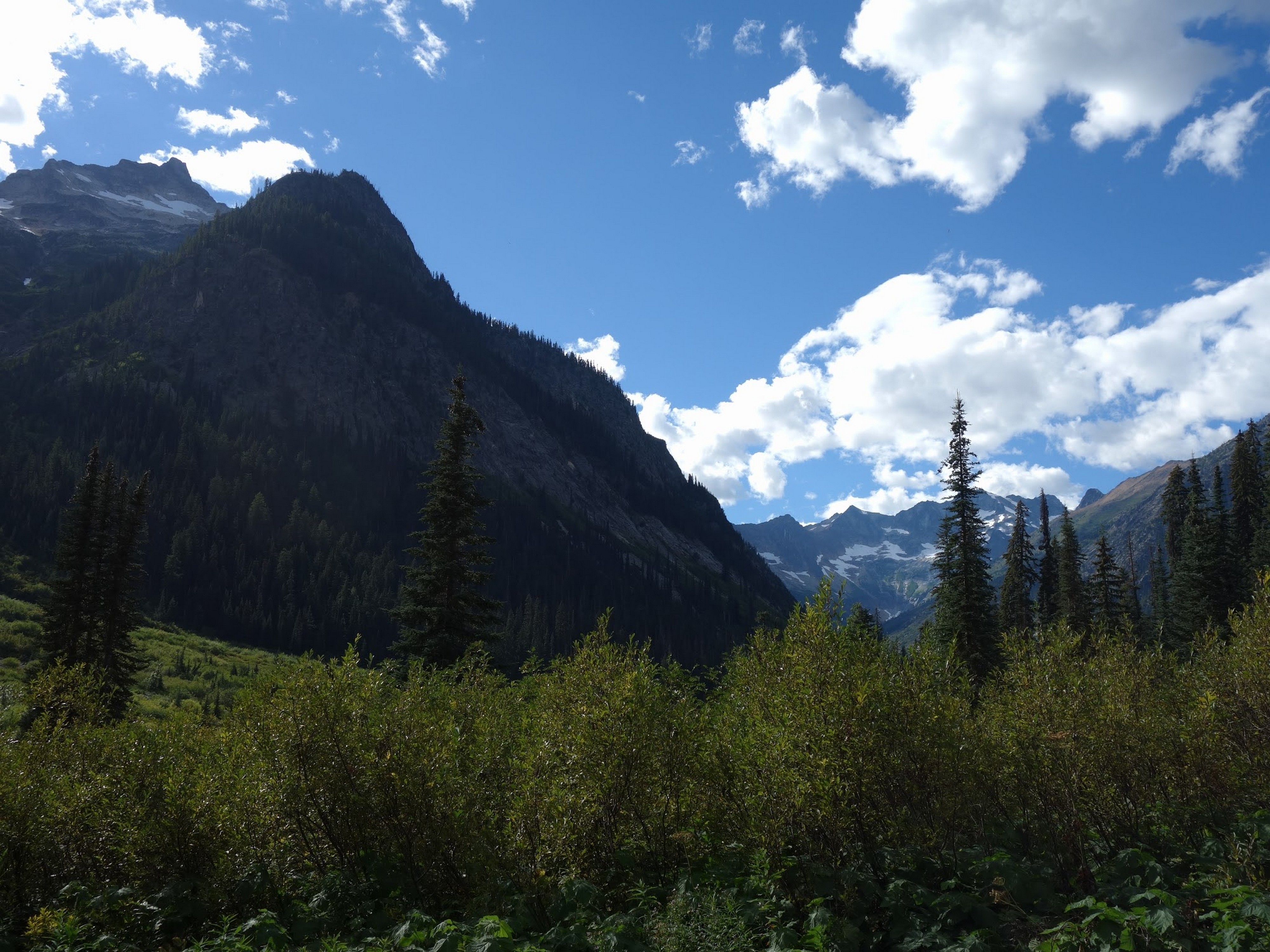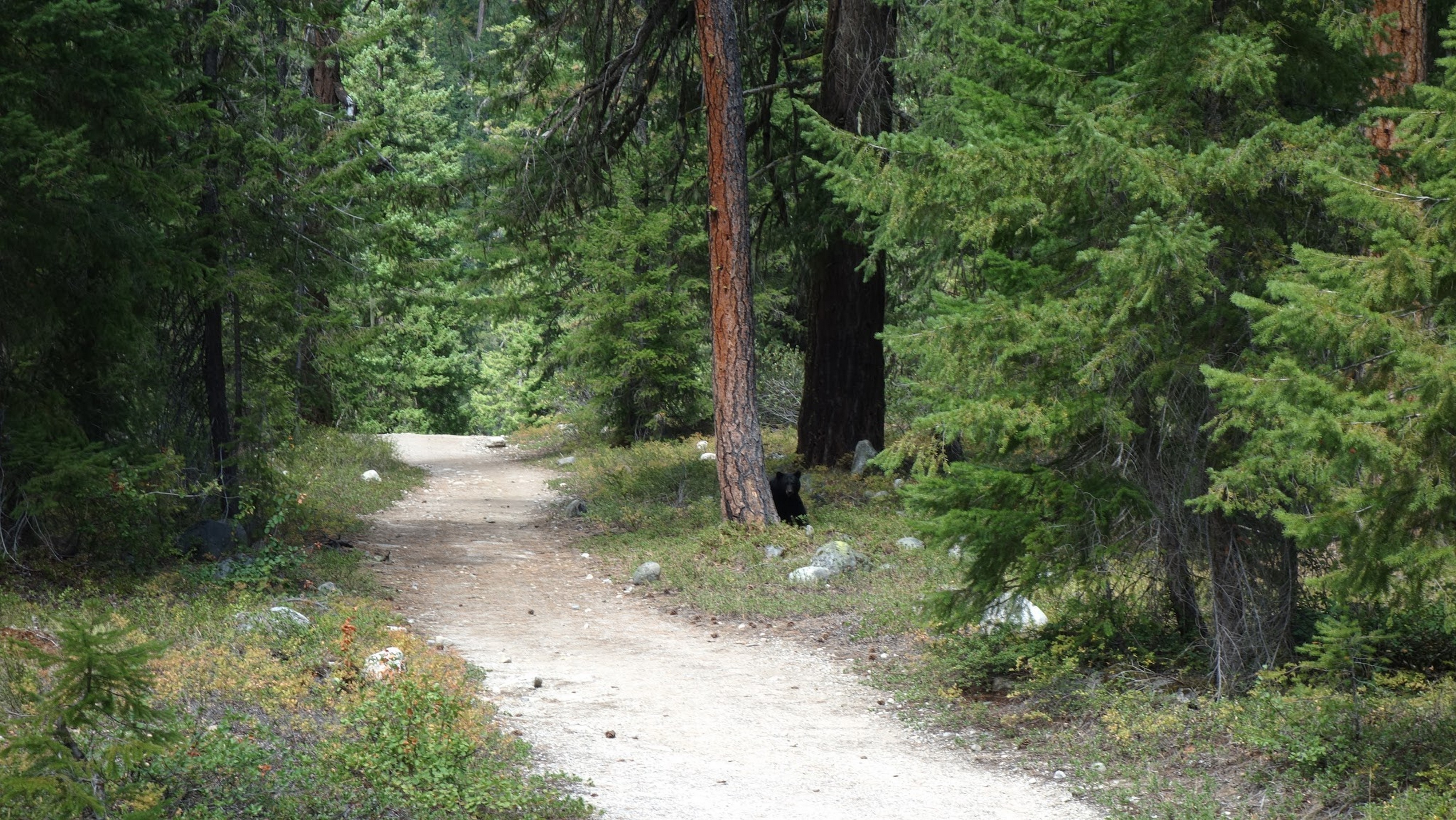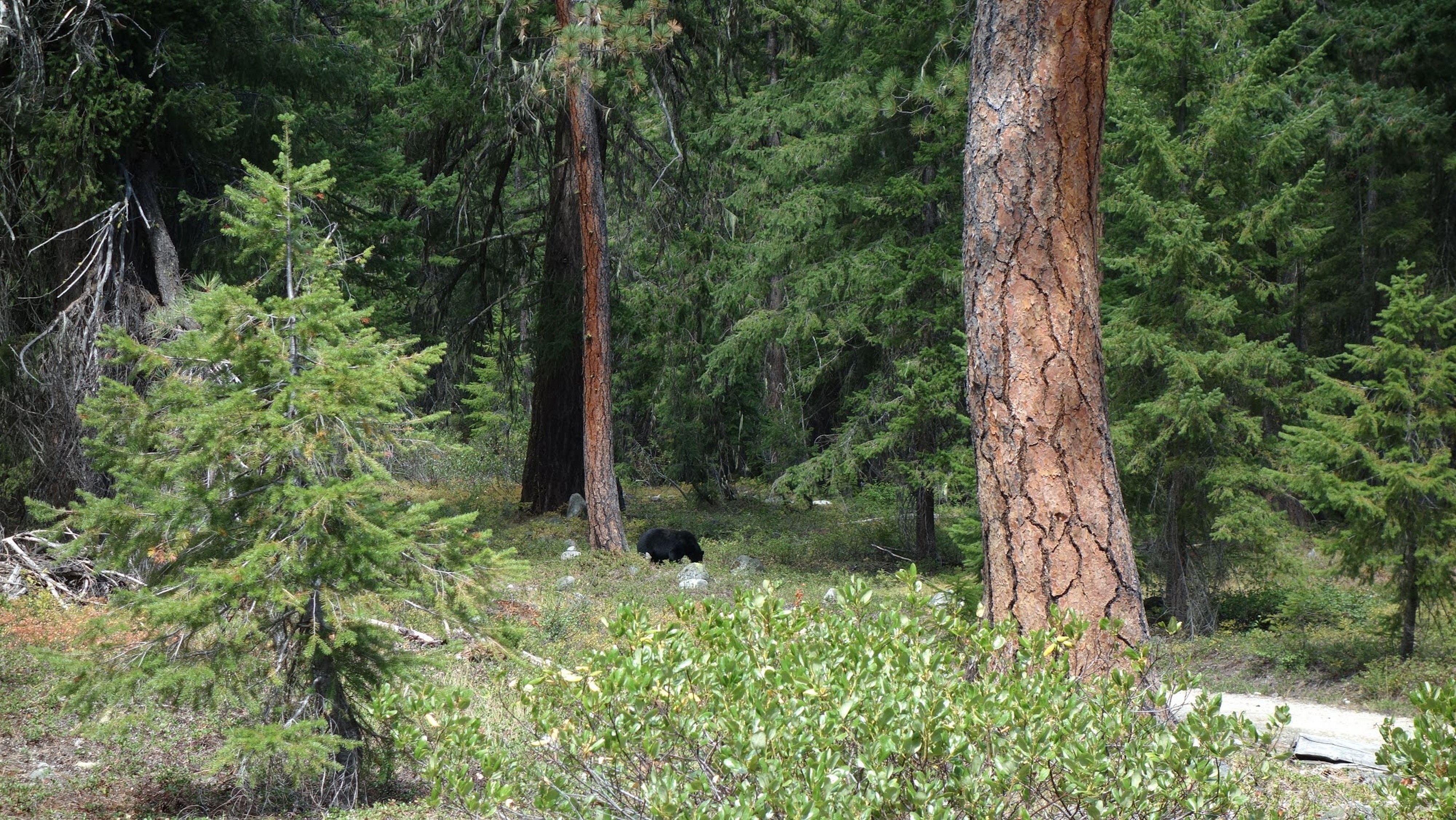 We reached the old road again and it was one more mile to the Bridge Creek Trailhead, which we reached quickly and locked the bikes to a tree nearby. It was as we were taking a rest I noticed a large black bear a few hundred feet away. He didn't seem to mind us at all. Just after 2pm we started hiking up the Bridge Creek Trail, then turned up onto the North Fork trail to finish the approach to the north side of Goode.