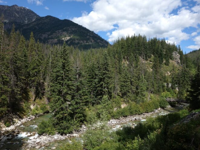 The next morning we got to Chelan and stopped for a quick breakfast before buying our tickets for the Lady of the Lake ferry. With our bikes, it ended up costing nearly $90 per person! At 8:30am the boat was moving and we arrived in Stehekin 2.5 hours later. The ride was fairly enjoyable but also a nice way to get a little extra sleep before a long approach. I fueled up with a little more ice cream and we piled into the shuttle bus to High Bridge with our bikes. We only got a one way ride as we planned o ride our bikes the whole way down when we returned.
