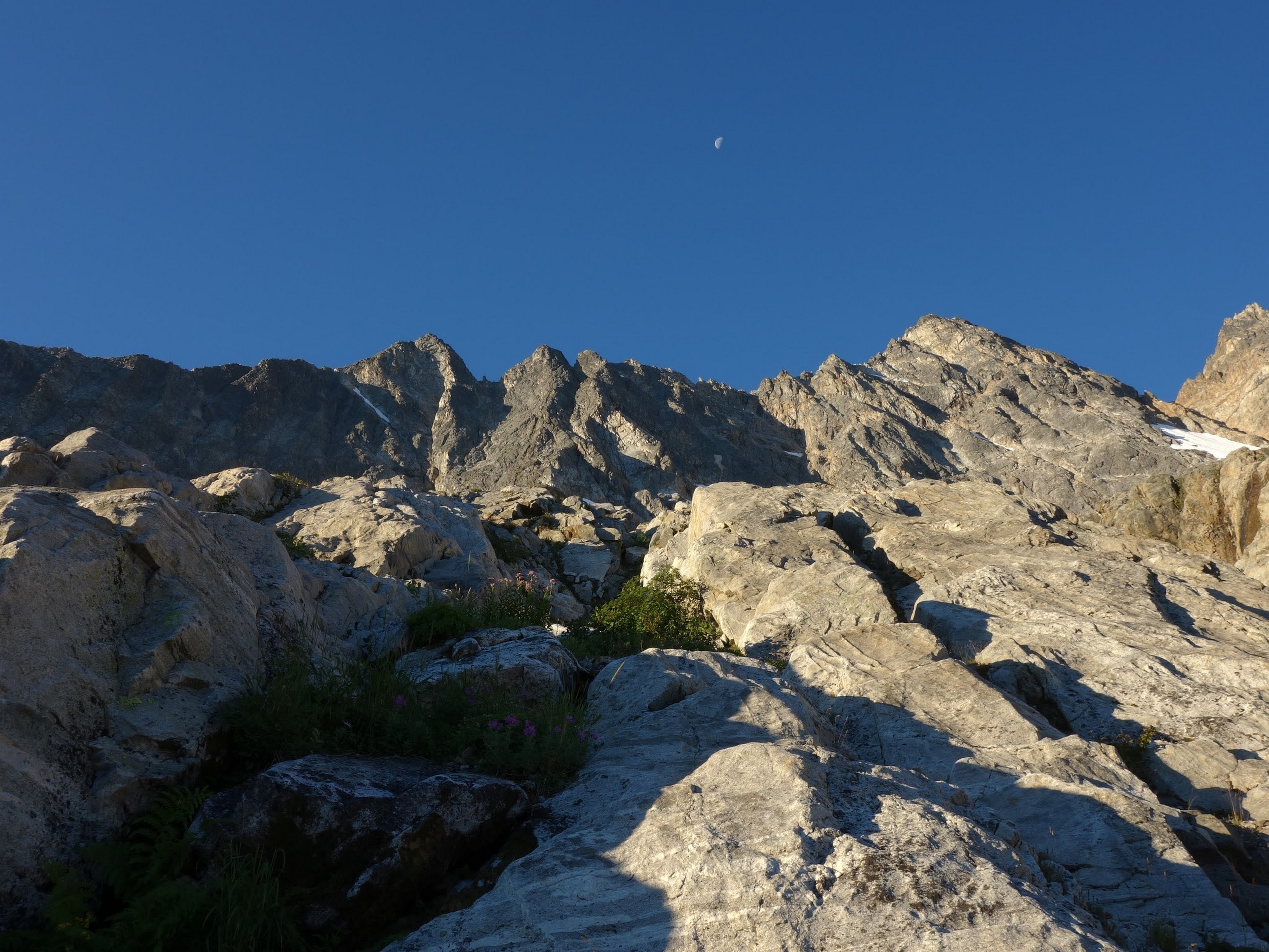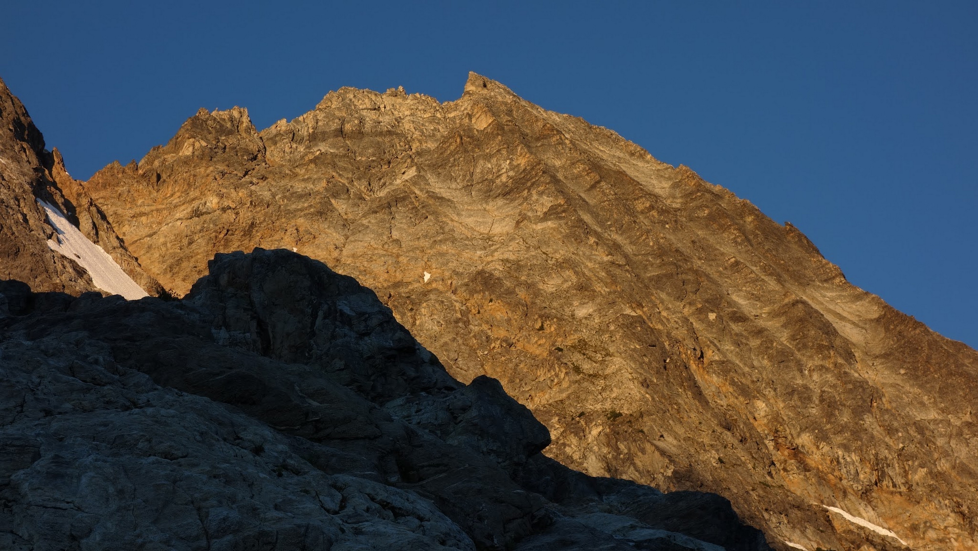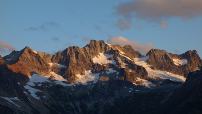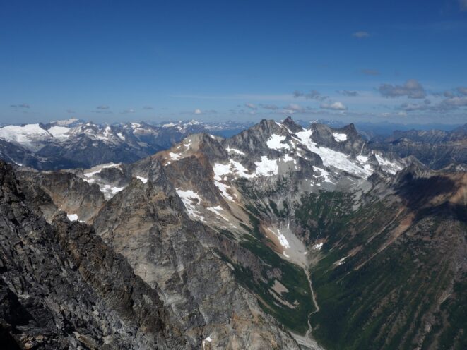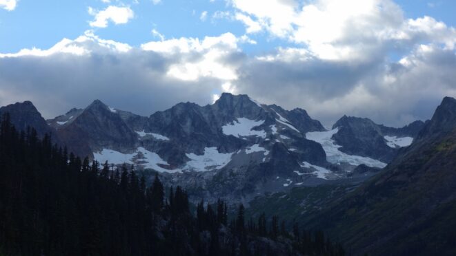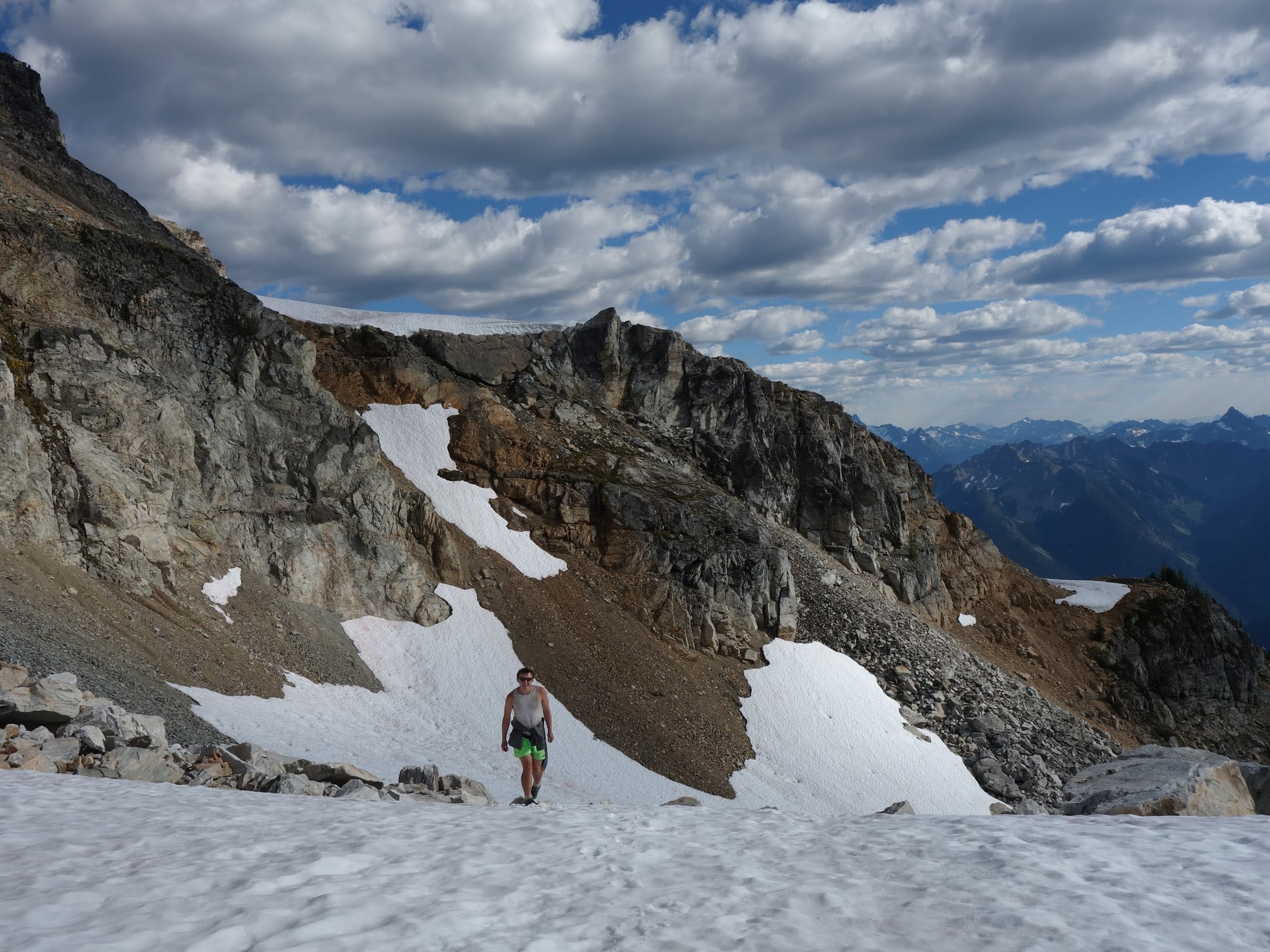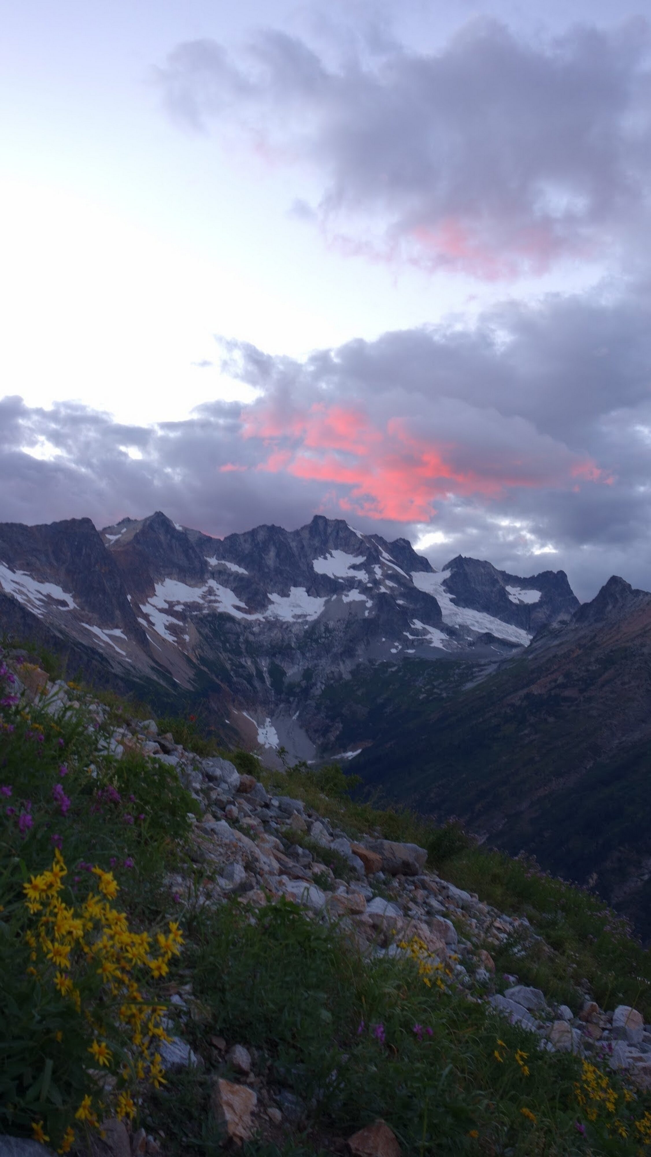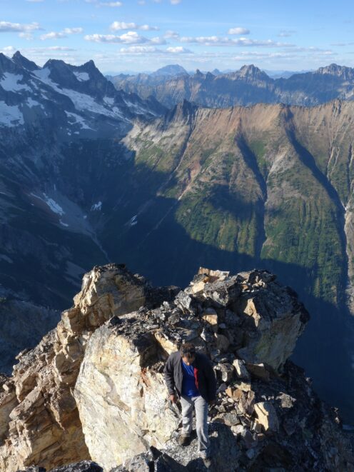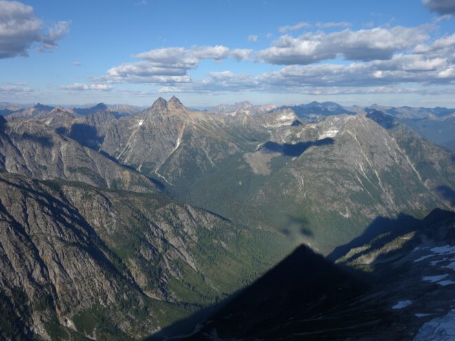 By around 6pm we started heading down and reached camp an hour later. Descending that talus wasn't fun so I took a route to skiers left onto some more solid rock and slabs. Again, we ate dinner to a beautiful sunset over Buckner, and the entire Glacier Peak Wilderness area. The last rays of light hitting Mount Goode directly above us was a real treat to witness!