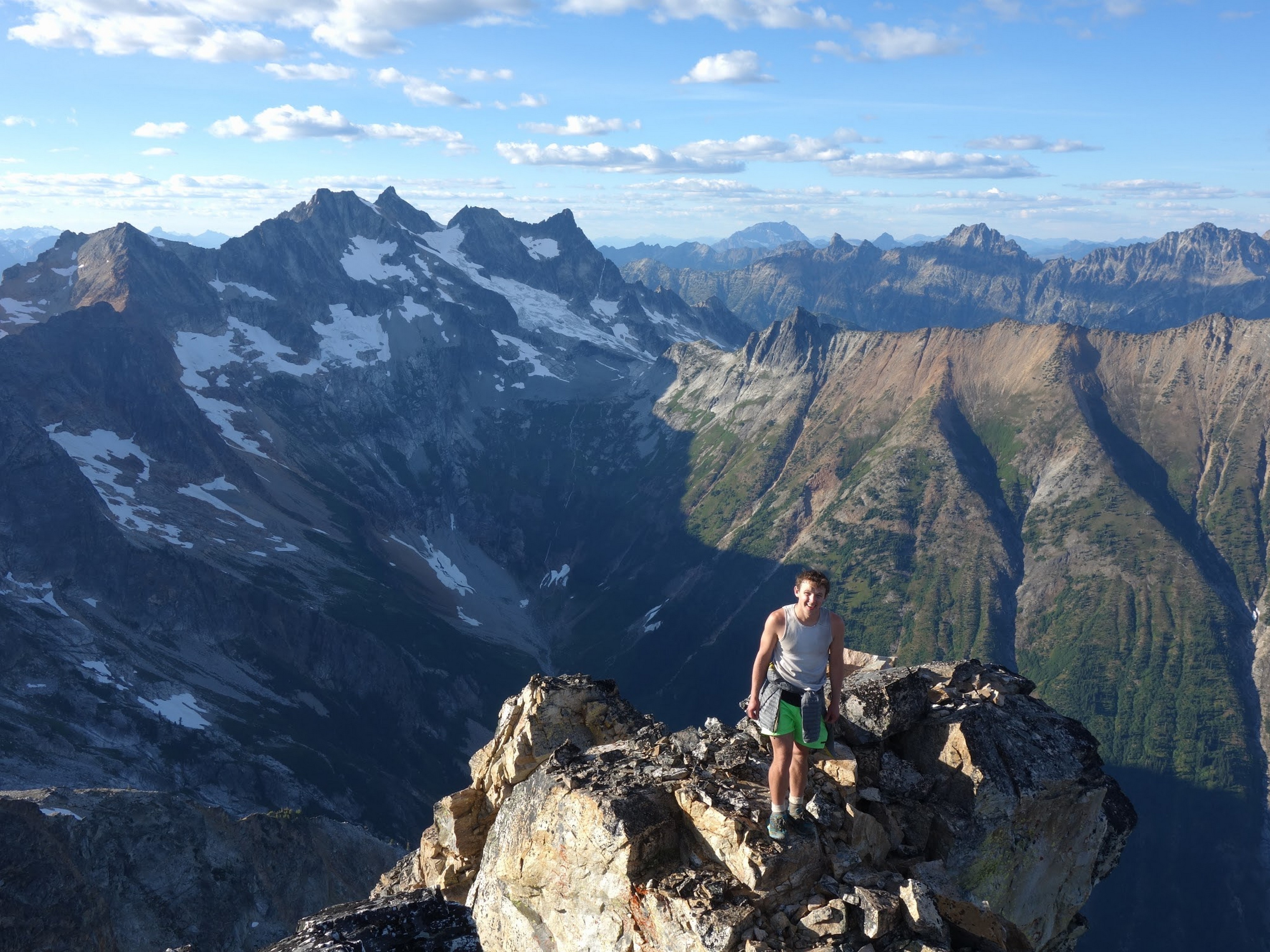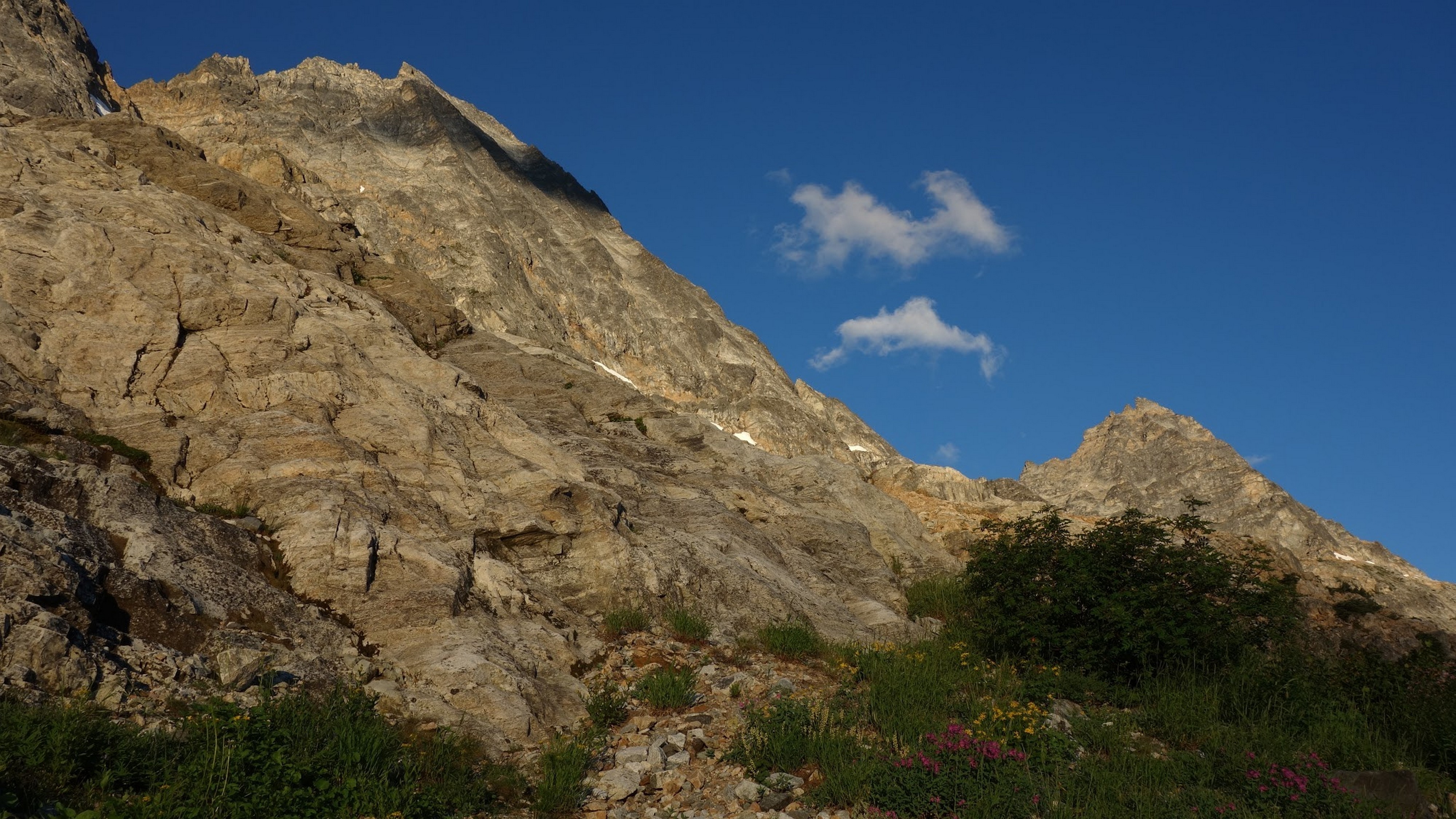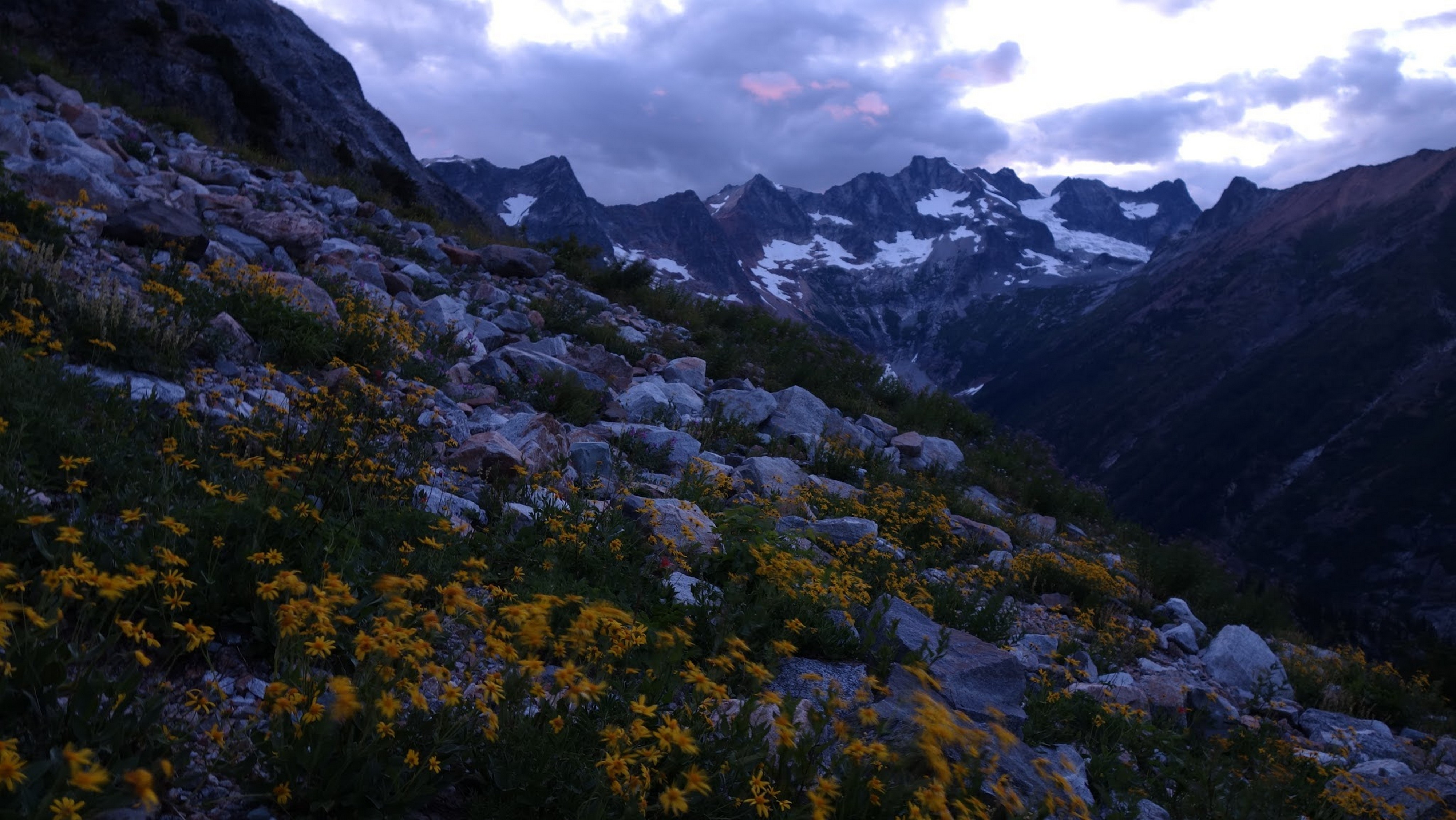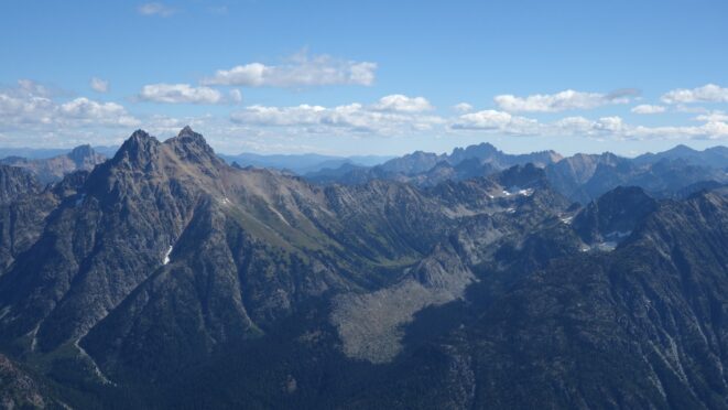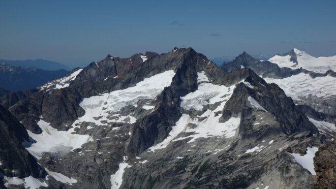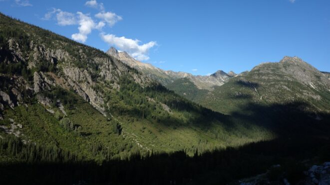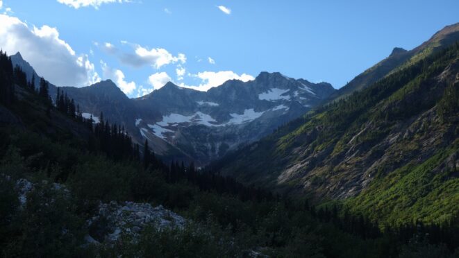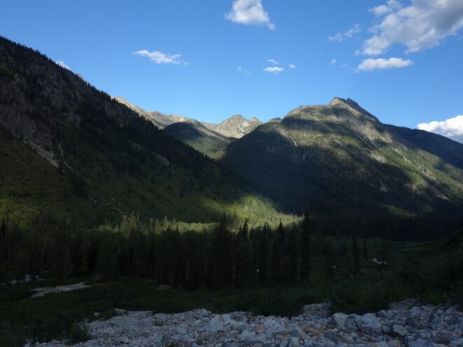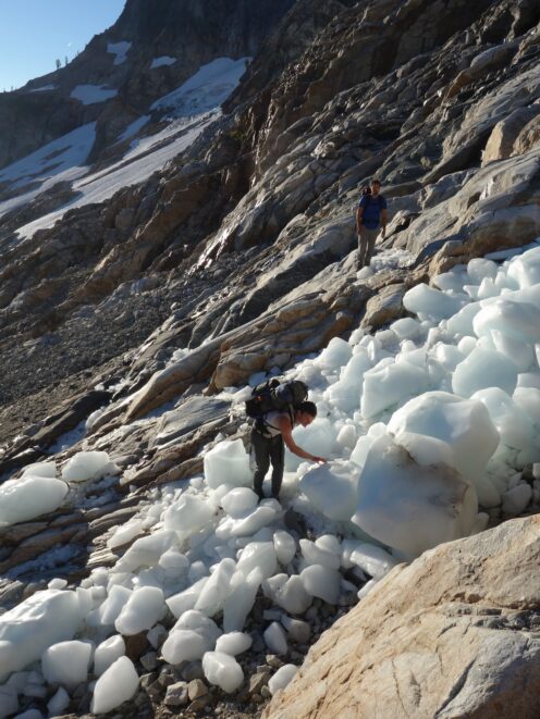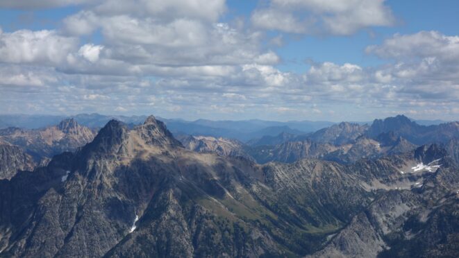 By around 6pm we started heading down and reached camp an hour later. Descending that talus wasn't fun so I took a route to skiers left onto some more solid rock and slabs. Again, we ate dinner to a beautiful sunset over Buckner, and the entire Glacier Peak Wilderness area. The last rays of light hitting Mount Goode directly above us was a real treat to witness!