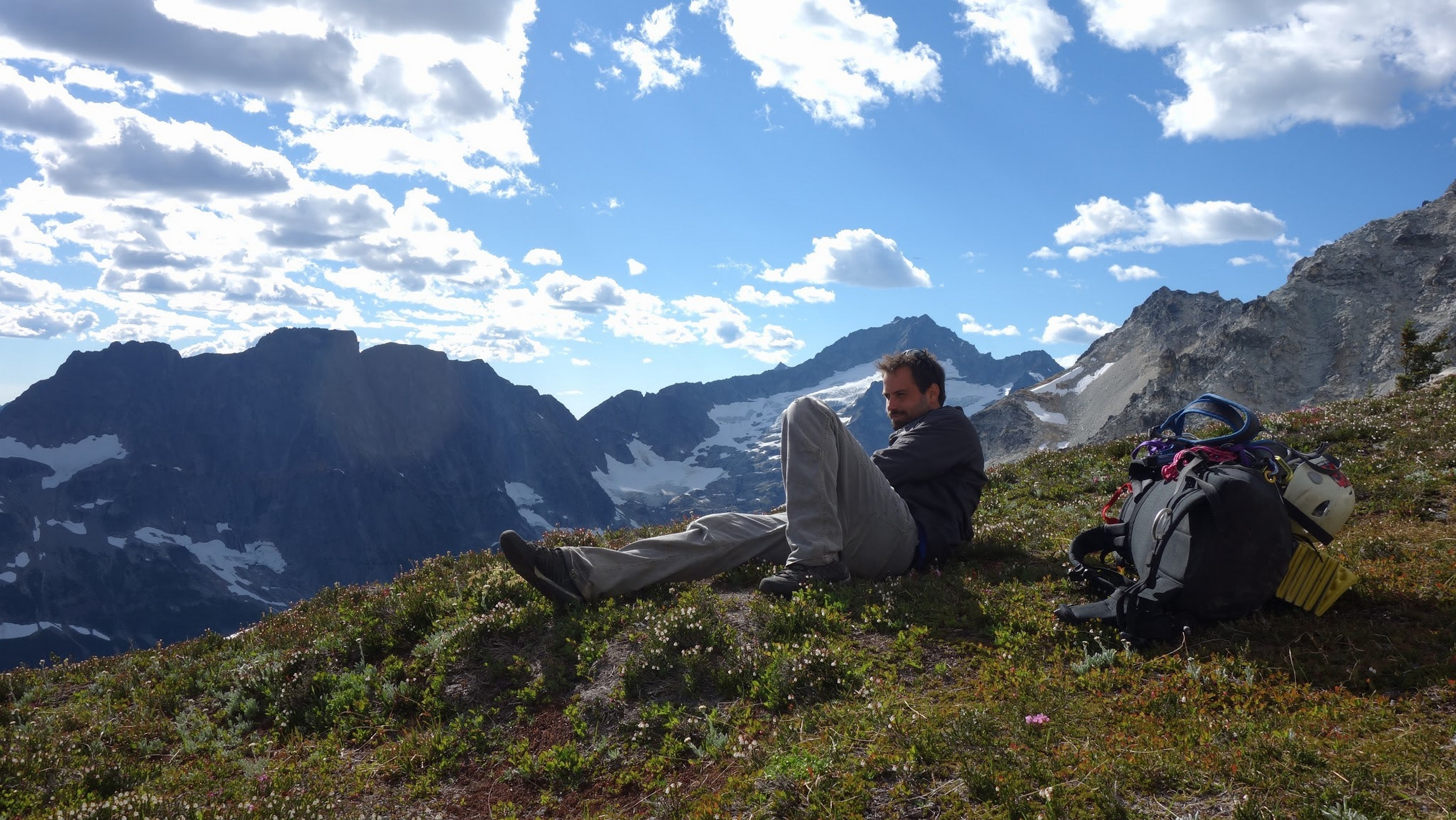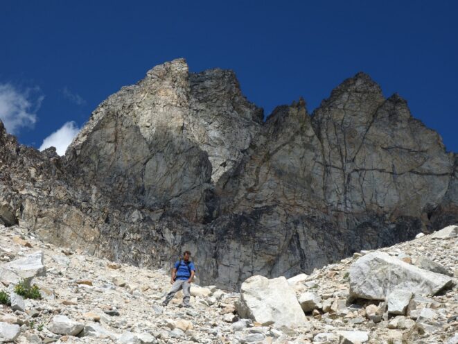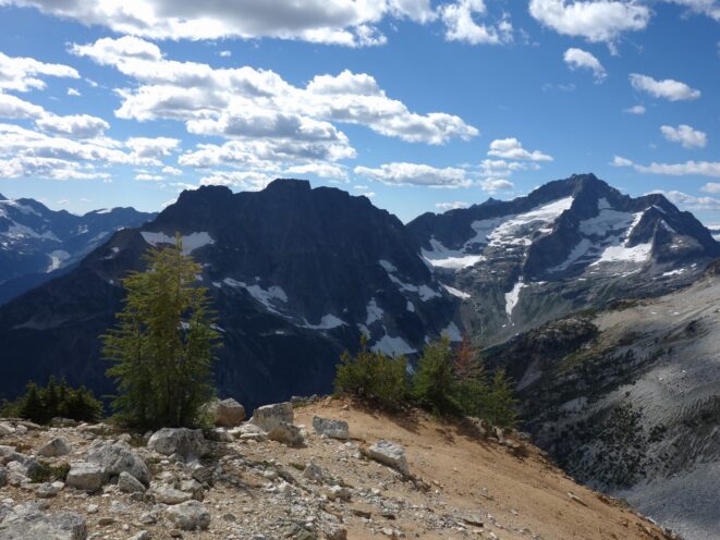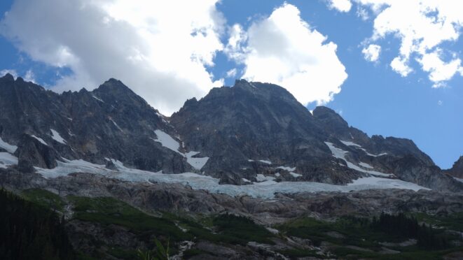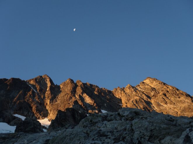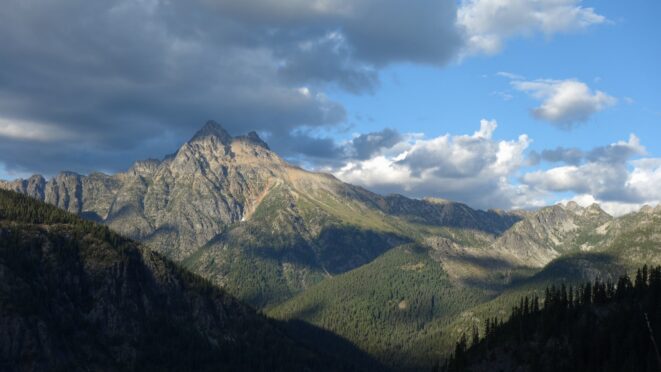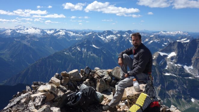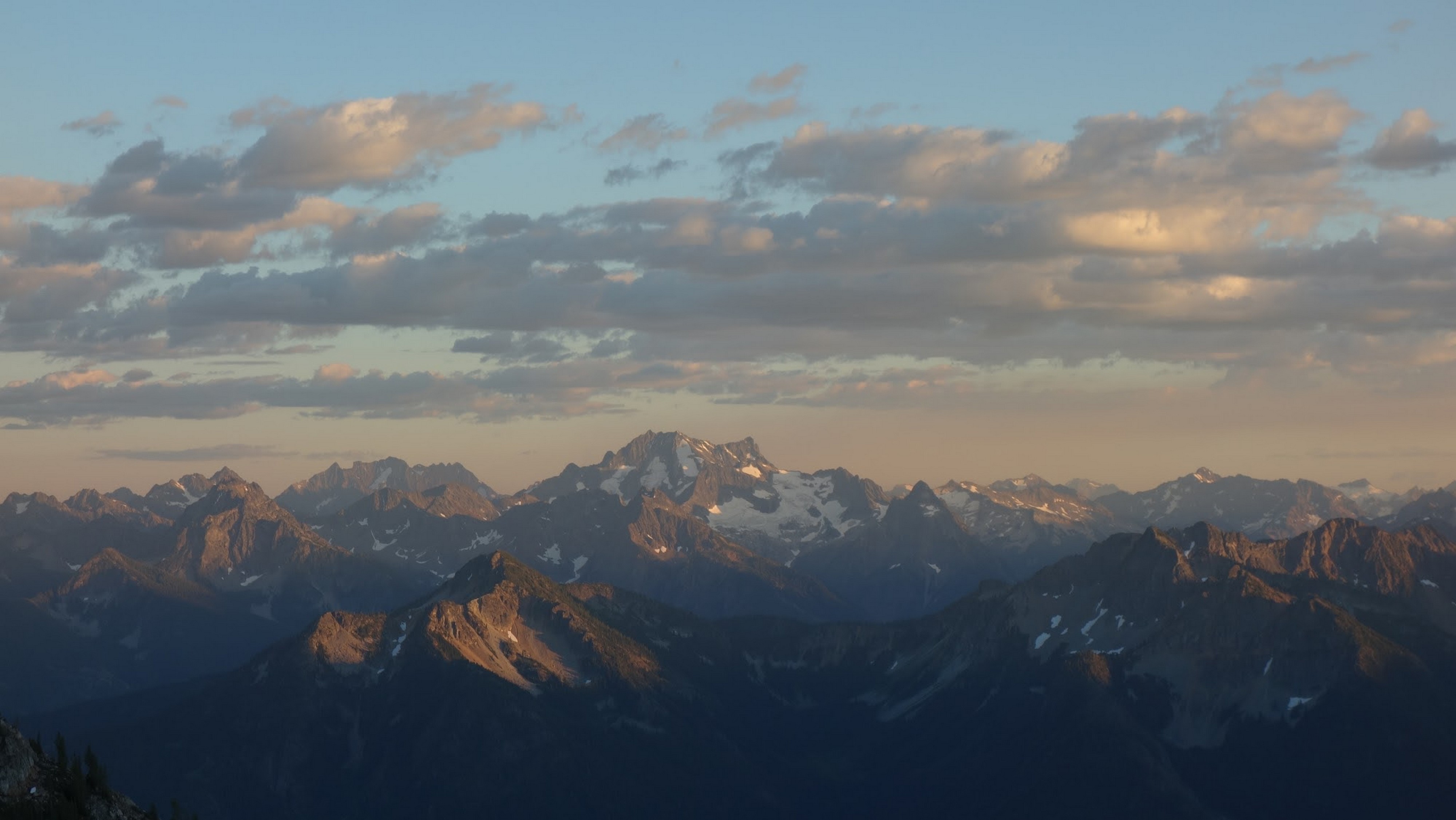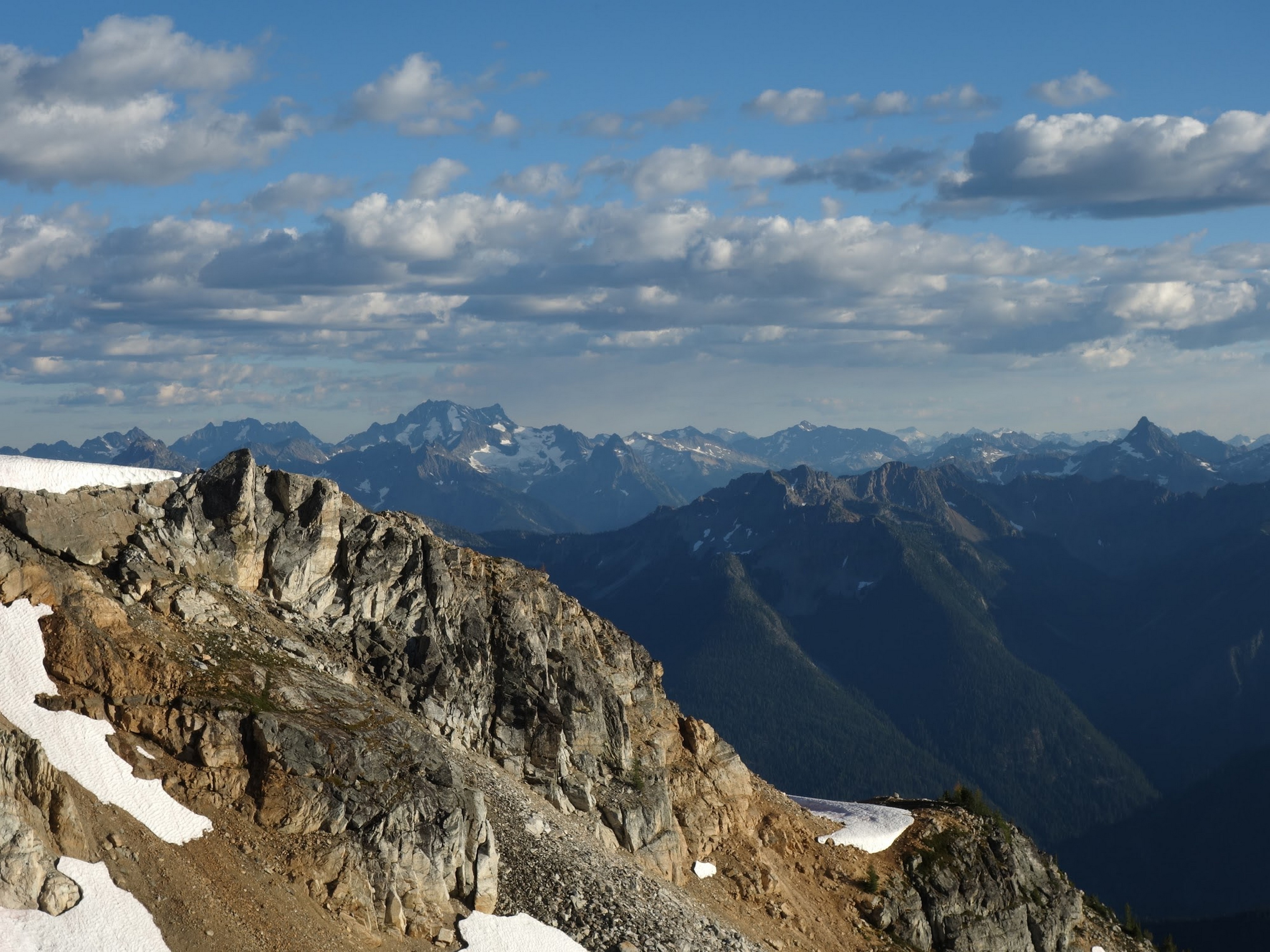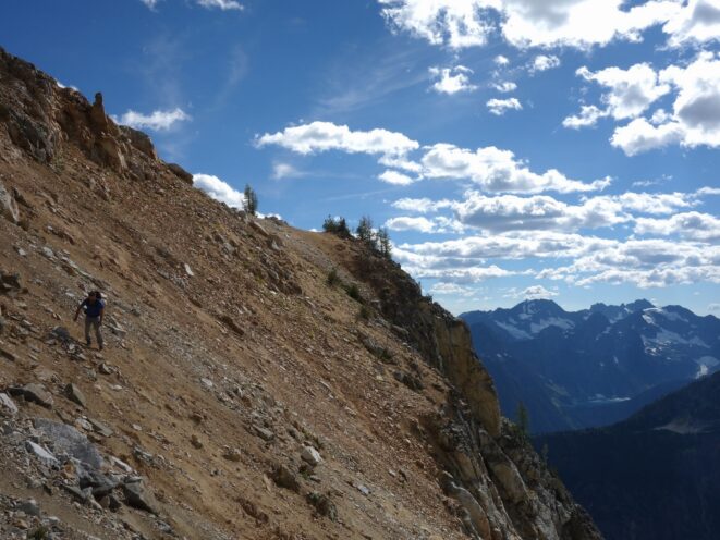 By around 6pm we started heading down and reached camp an hour later. Descending that talus wasn't fun so I took a route to skiers left onto some more solid rock and slabs. Again, we ate dinner to a beautiful sunset over Buckner, and the entire Glacier Peak Wilderness area. The last rays of light hitting Mount Goode directly above us was a real treat to witness!