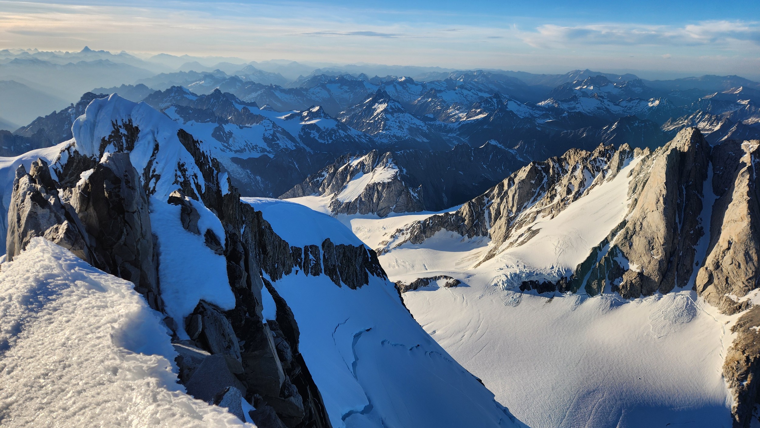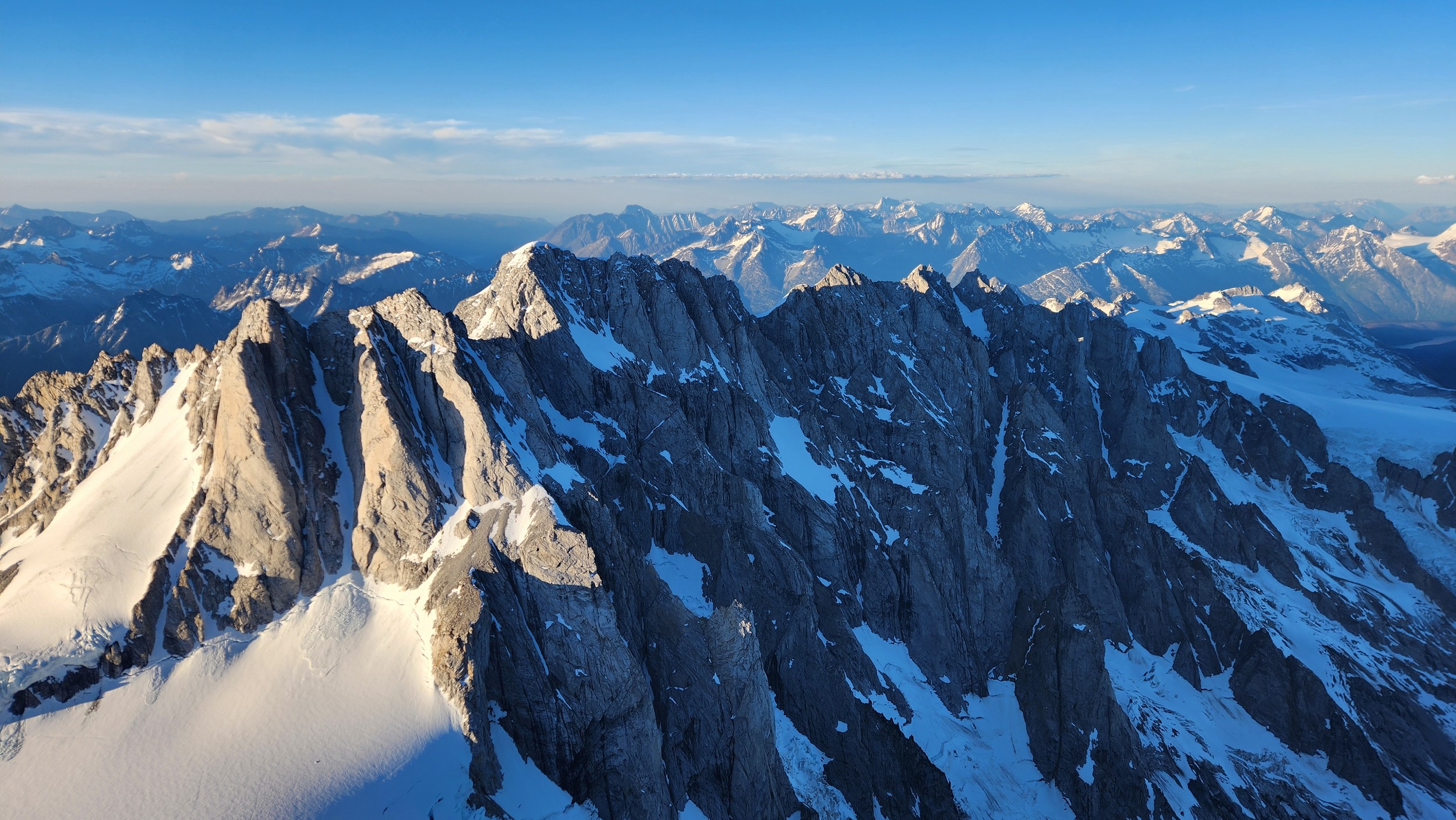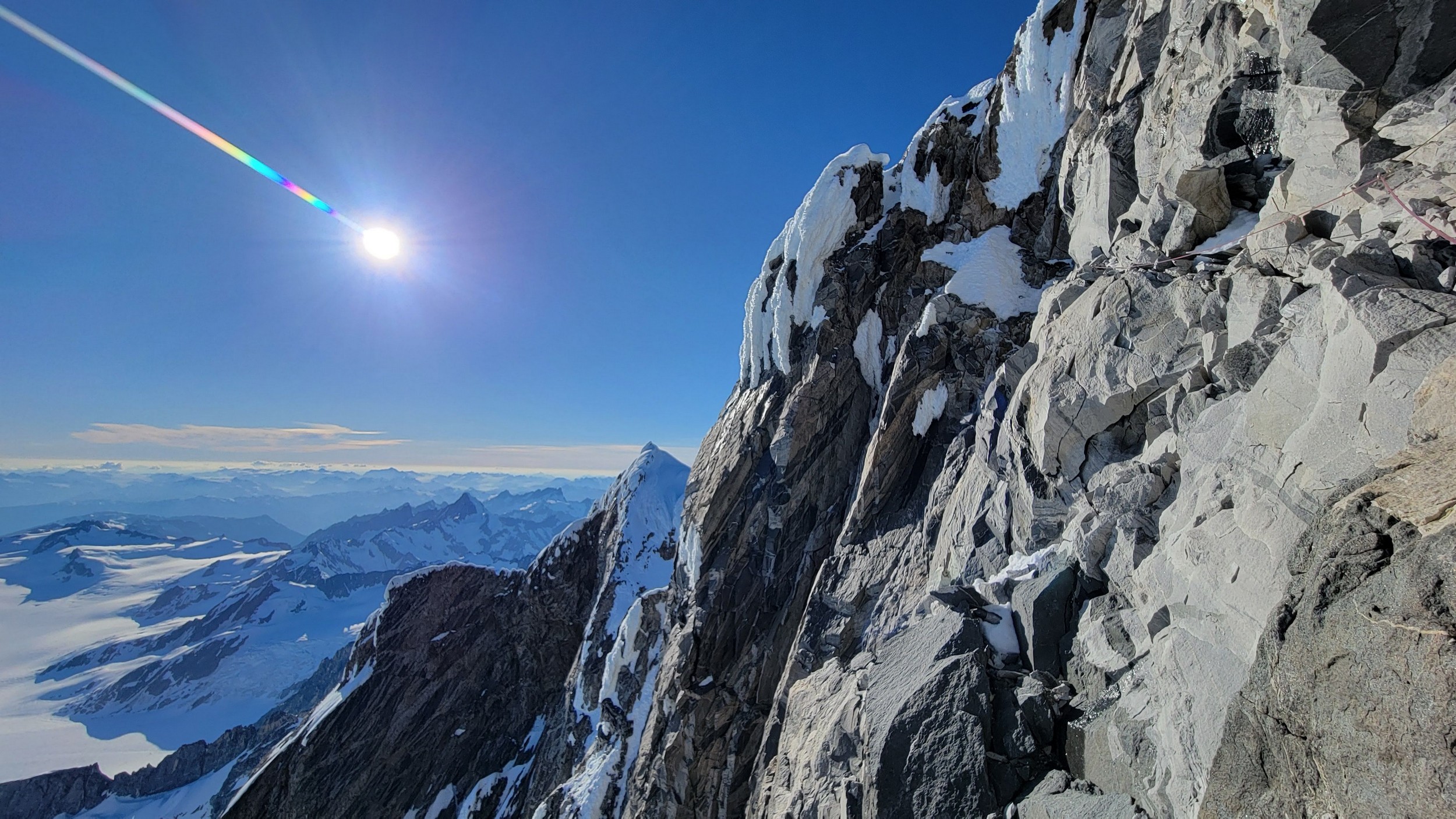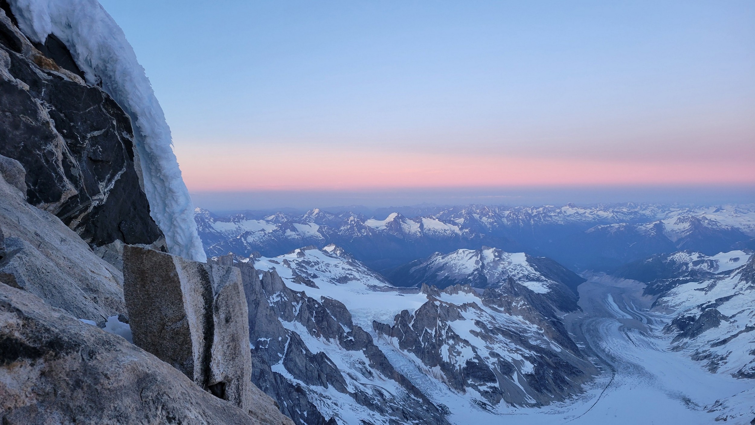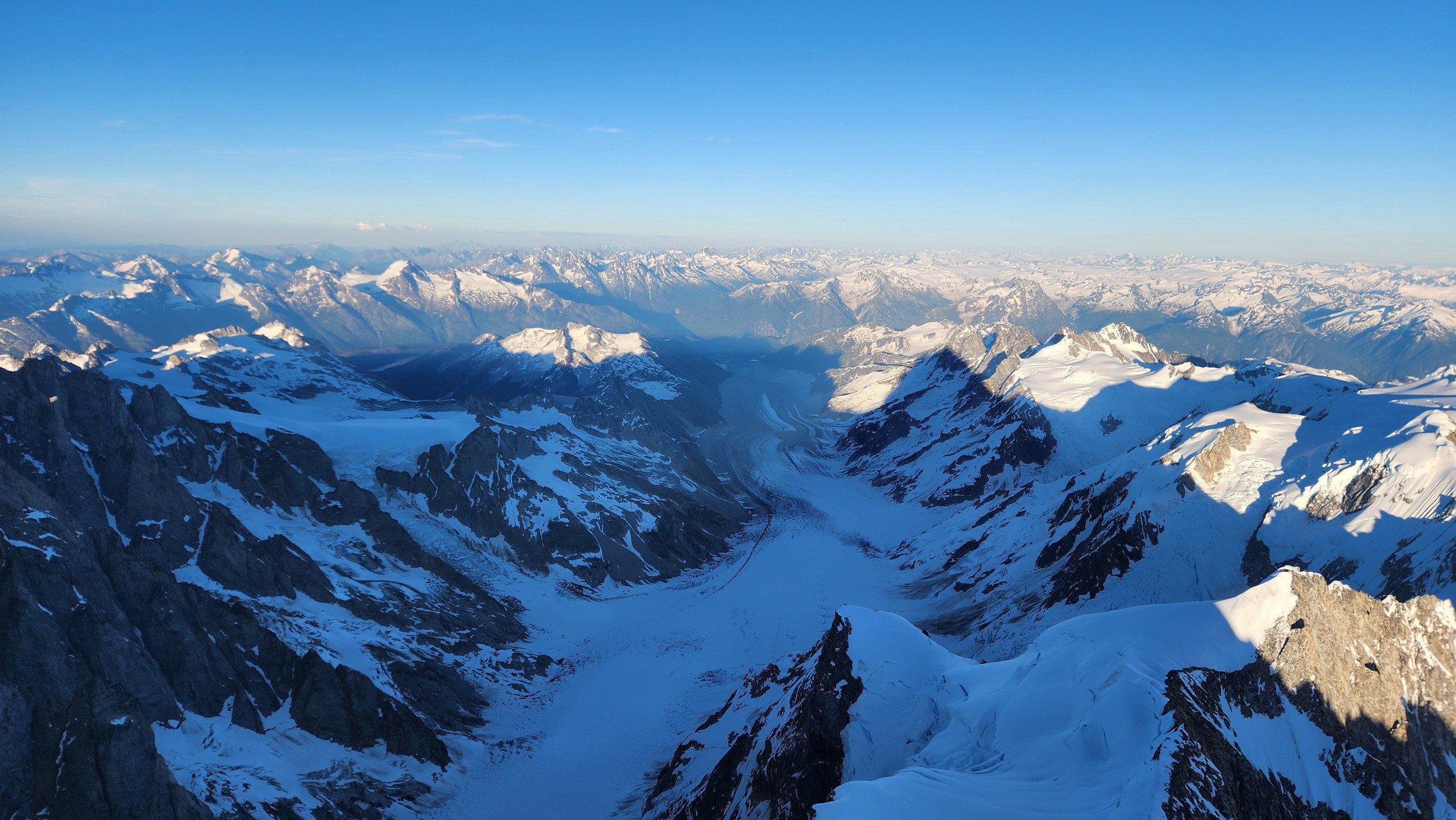The thought that kept running through our minds was this was literally going to be the best time in our lives to climb this thing, and we might get skunked again due to fires and no available heli access. Seriously, I cannot think of a single other time at least since I have been actively climbing mountains that 3 weeks of stable weather hit the Waddington Range. I had often recalled a quote I heard Fred Beckey make in one of his talks I watched early in my mountaineering career that he believed Mount Waddington was the most important peak in North Amercia. Whether that had some bias on his end or not (if you have not read the Climbing magazine article about his monumental effort to get the second ascent of the mountain, definitely check it out), I can certainly understand where he came from with that statement. No other peak on the continent with such major prominence is more difficult to reach the summit. With 10,758 feet of prominence, Mount Waddington is one of only 17 peaks on the continent with over 3000 meters of prominence, but is without a doubt the most technical, and certainly has a feeling that you really are on a big scary mountain. Comparing to Fairweather, where we were for certain the only souls for dozens of miles in all directions, the feeling of vulnerability on the SW face of Waddington far surpassed anything I felt on Fairweather even though I heard another party on the summit just a few hours before we reached the top. There were other people merely a handful of meters away as we were high on the mountain, but it did not do much to curb the feeling we were totally alone.