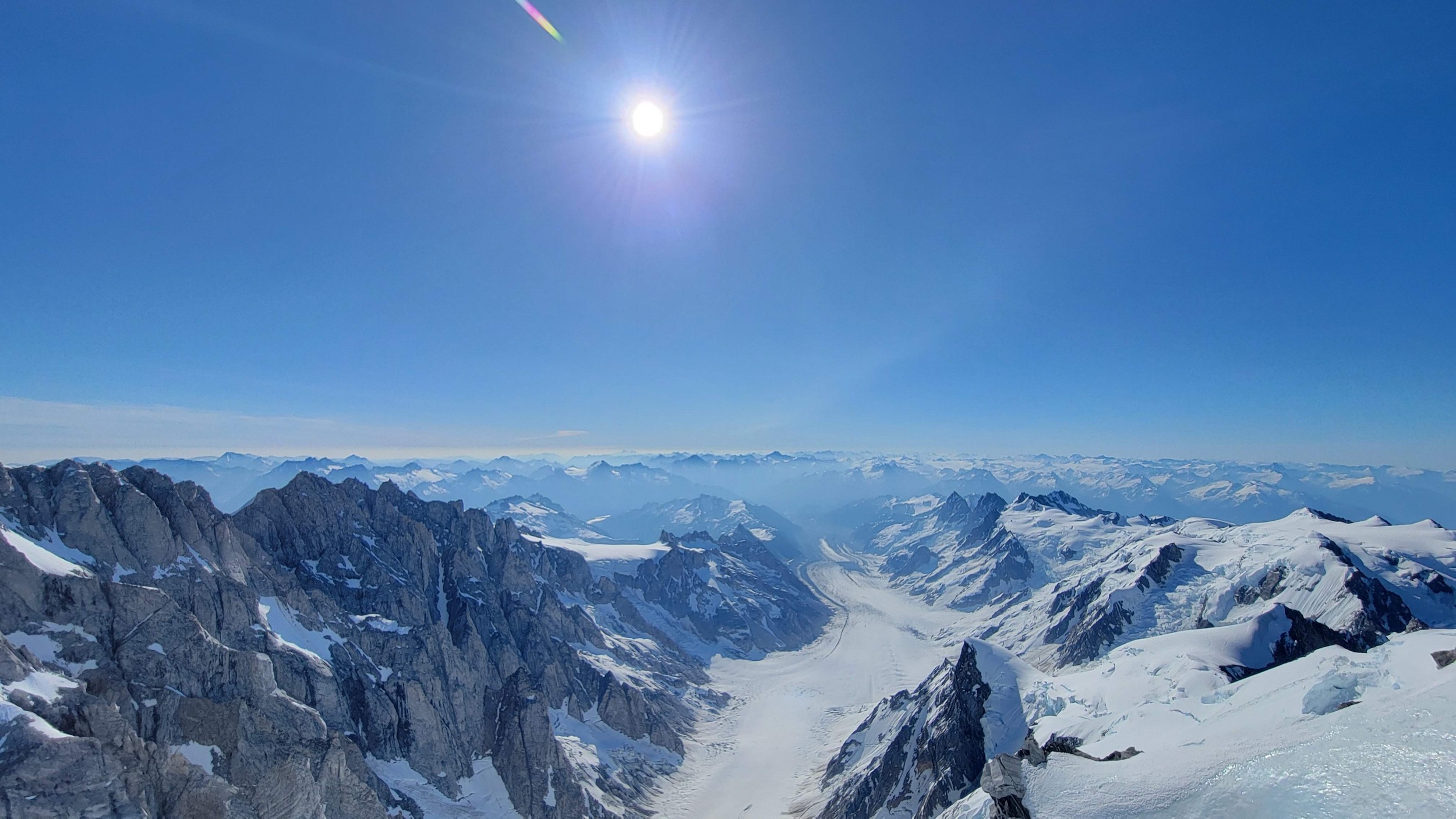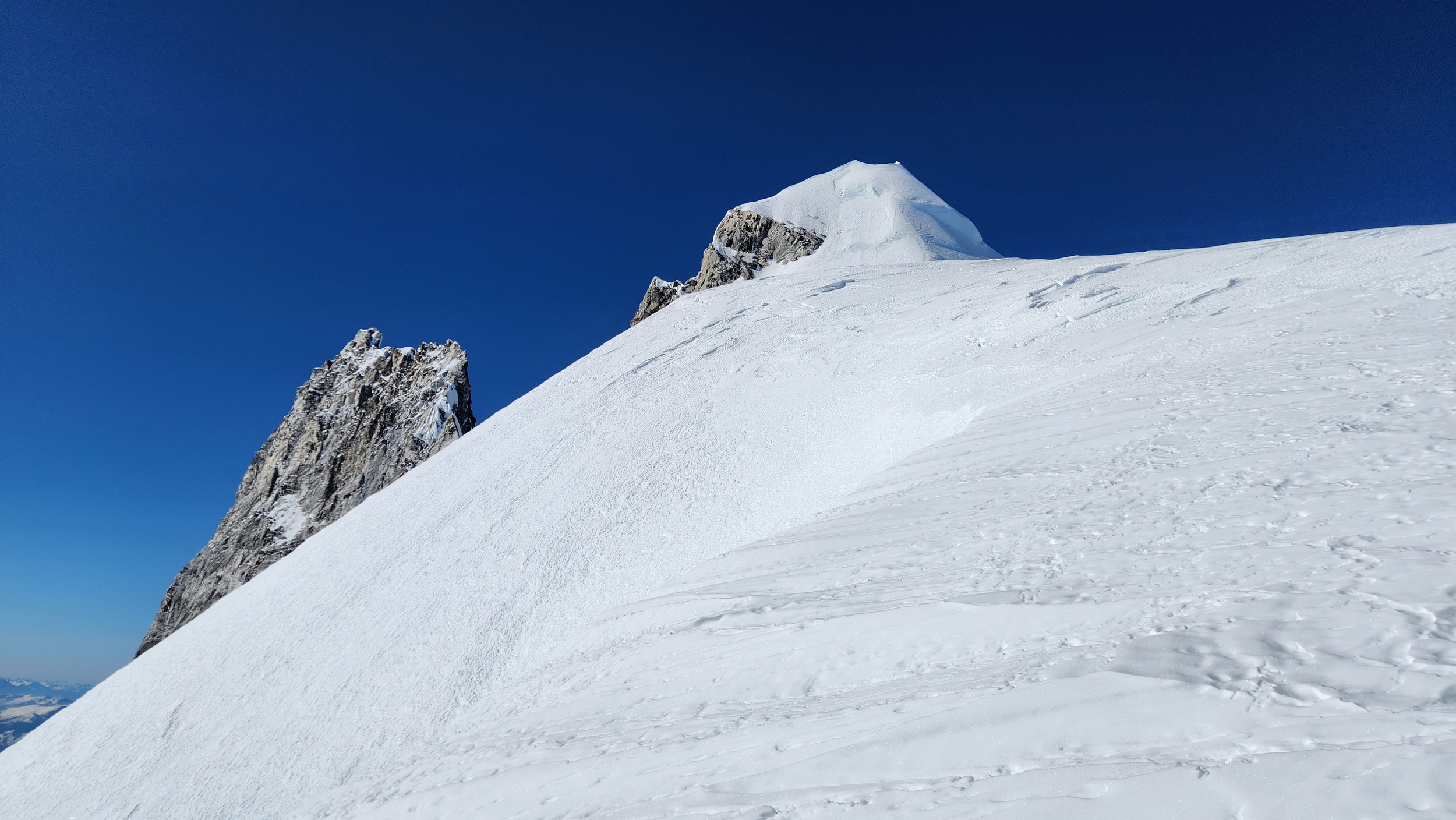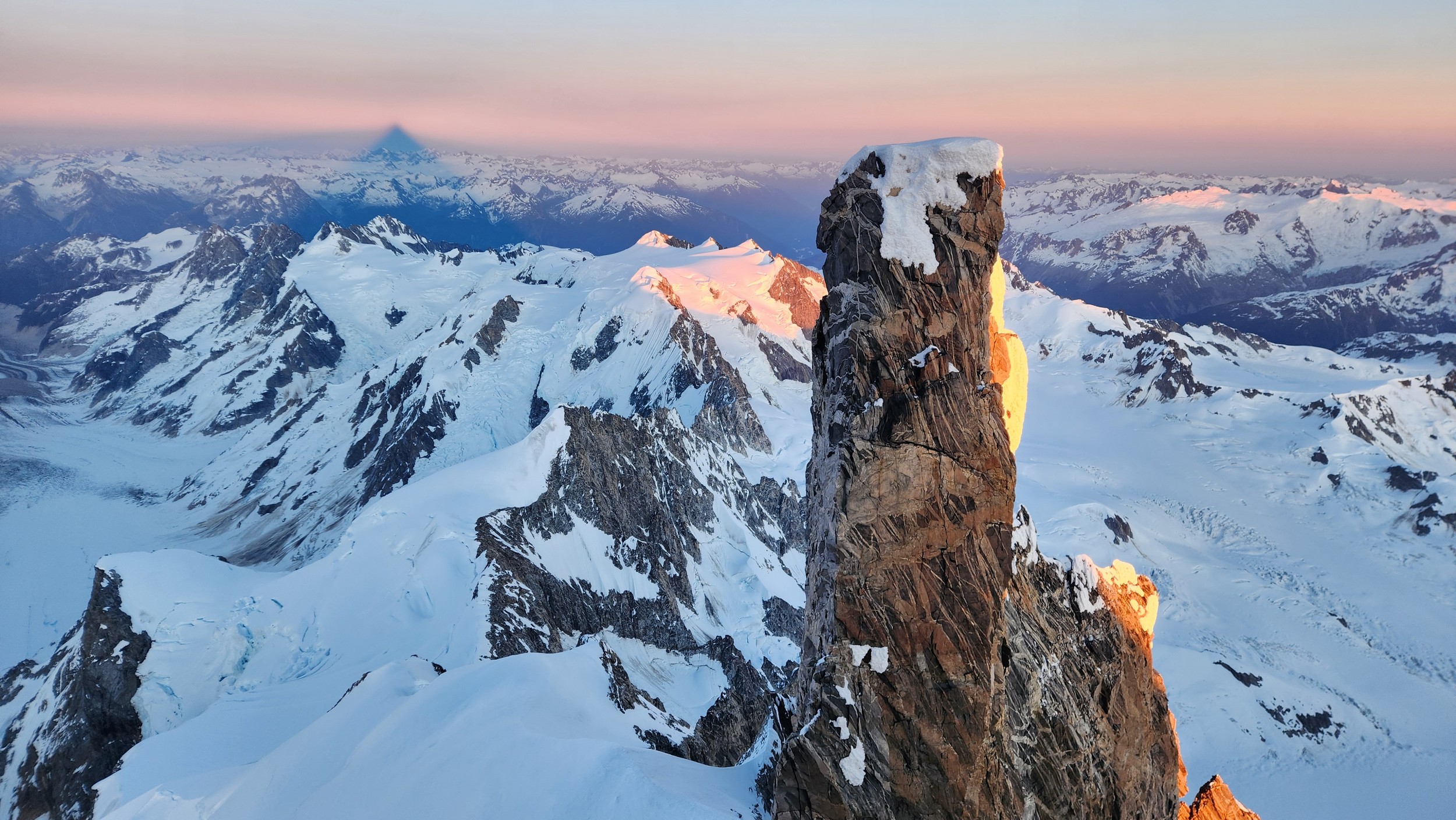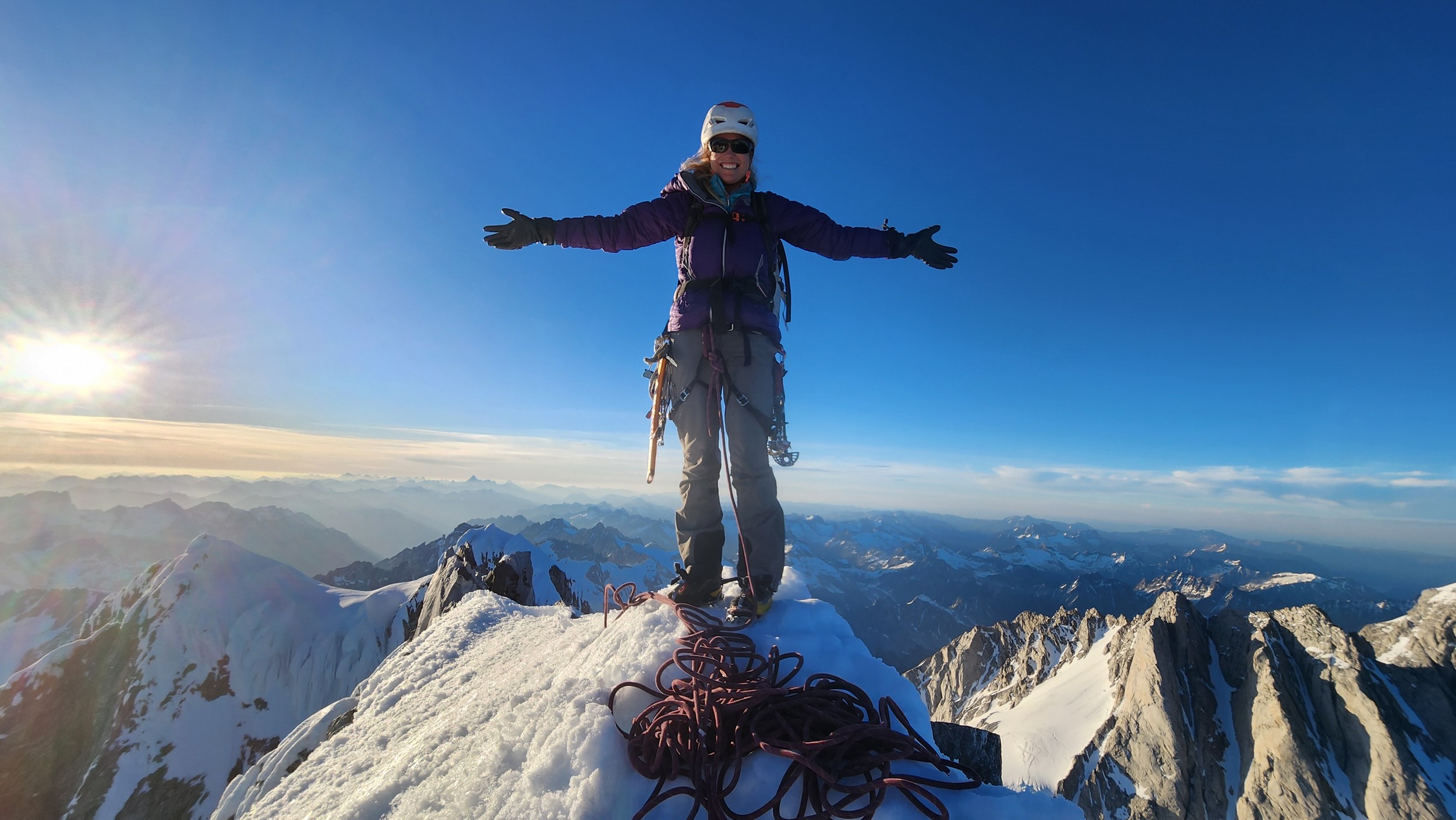 I had a range of emotions once we were on the summit. A combination of excitement, hippieness and relief. I had been trying to climb this mountain for many years, and had even driven up to the White Saddle air ranch in 2019 and camped out on their lawn for nearly a week in the rain without ever flying in due to the awful weather. Sarah and I knew we couldn't stay long as we were going to have a long blind descent as darkness was setting in, but we made the most of the 15 minutes we stayed. The views were awe inspiring, with dozens of peaks that looked like the north cascades on steroids. The one thing that stood out the most was the Tooth, a narrow and imposing spire along the spine of Mount Waddington that we were unable to appreciate from the west or at any point on route.