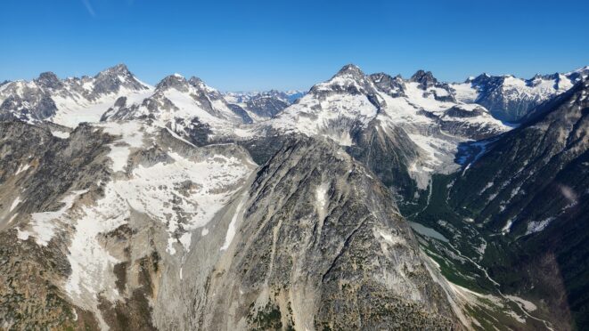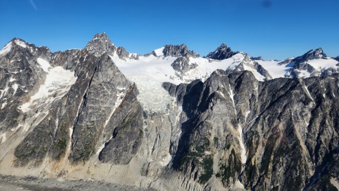 Shortly after returning from Alaska after successfully climbing Mount Fairweather, I got a text from Sarah saying the weather on Mount Waddington was potentially looking perfect for weeks. All we could do at the current time was hope the good weather continued, because we still had a full week before we were able to head back north into BC. To our total suprise, it did hold, and on the 10th of July I picked Sarah up from the Seattle airport and we drove north towards Tatla Lake. Our objectibe had been the same as the previous year, and the same as my previous 3 attempts to get into the Waddington Range...the southwestr face. This 50 classic route sees very few ascents, and has not been climbed since Mark and Janelle Smiley did the route back in June 2012. Our plan of attack would be different however. Similar to how we climbed Fairweather, we would go with a minimal base camp and carry up and over the mountain with ultralight bivy gear climbing the SW face, and descending the standard chimney route on the NE face, then wrap around the Angel Glacier back to the Dais. We determined two bivies made the most sense, one at the top of the Dais just below the base of the entry couloir at 10400 feet and a second one at the base of the standard route right after the rappelling is completed on the stroll before making the rest of the descent. This would ideally allow us to avoid any movement in the dark, or at least minimize it and for the most part, it went off without a hitch. The crux of the whole operation seemed to be getting flown in with White Saddle air. The previous year in 2023 they totally skunked us and due to constand forest fire fighting they didn't even try to fly us in. Now in 2024, with the best weather window in seemingly decades upon us, we were still uncertain whether they would fly us in. Still, we started the drive from Seattle to Tatla Lake with their "guarantee" they would be able to fly us in on Thursday morning the 11th.