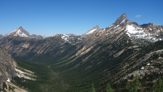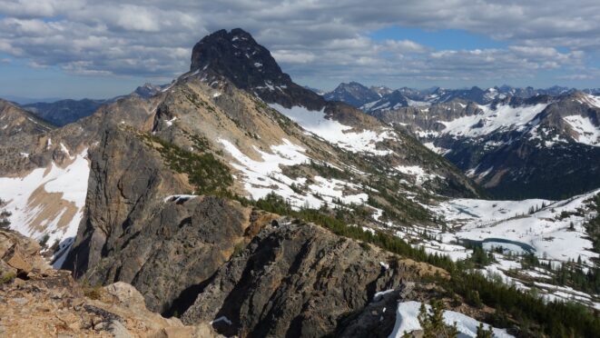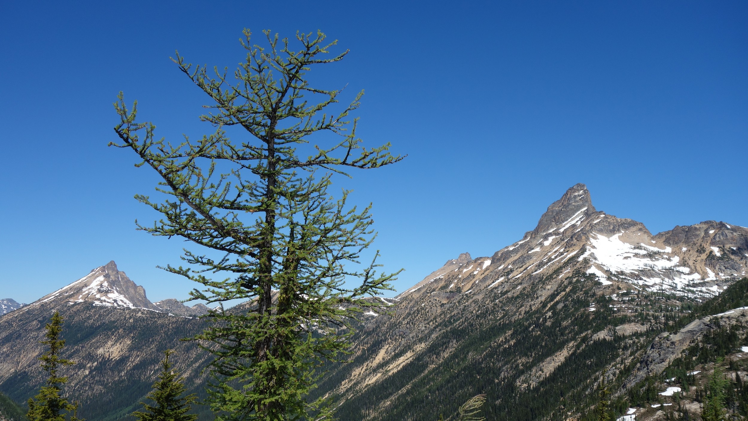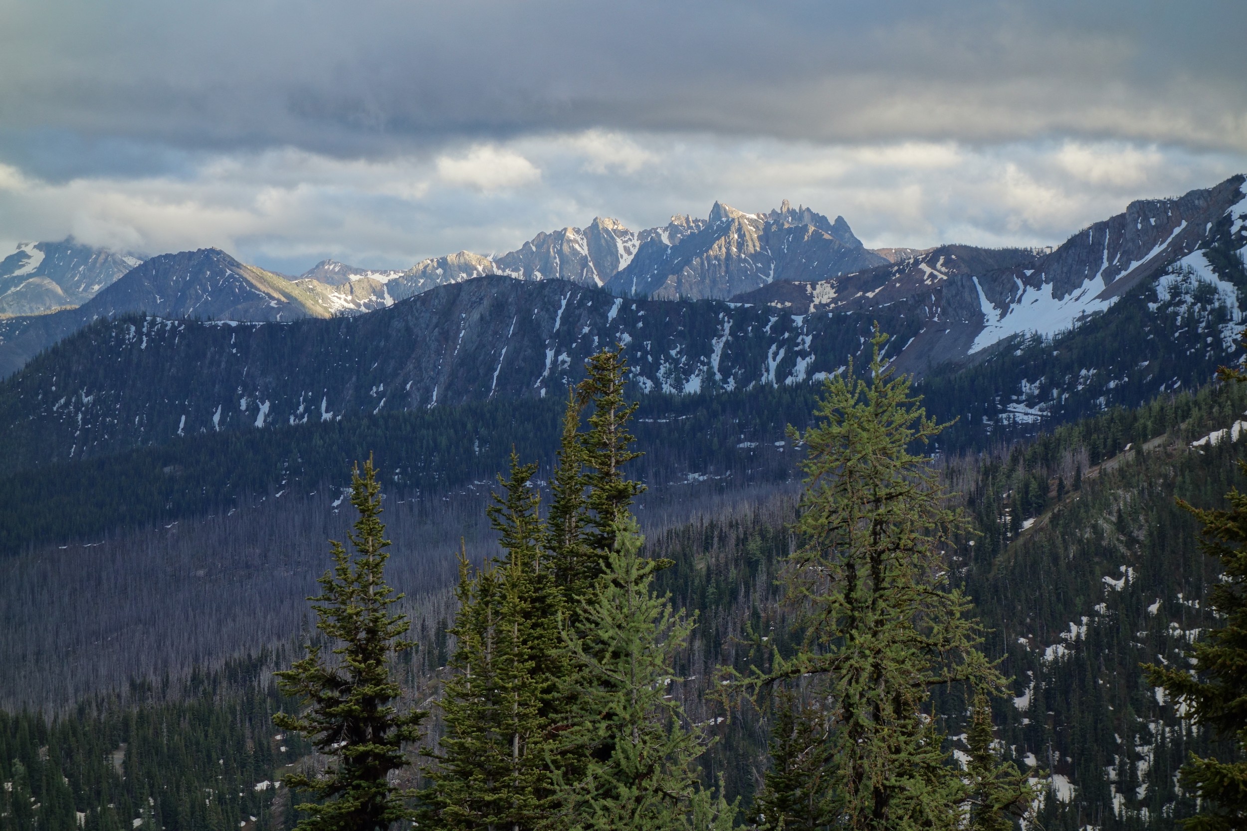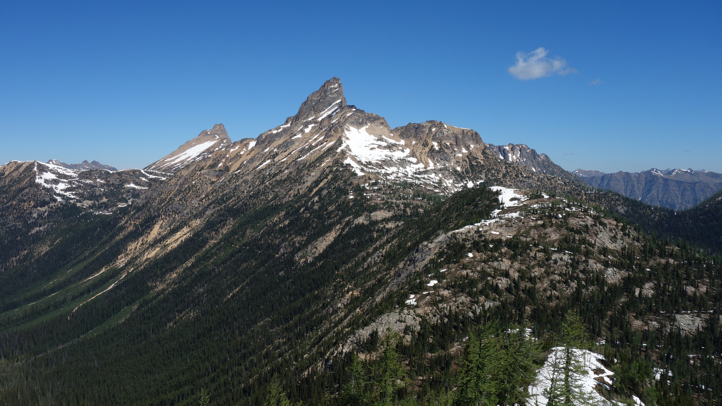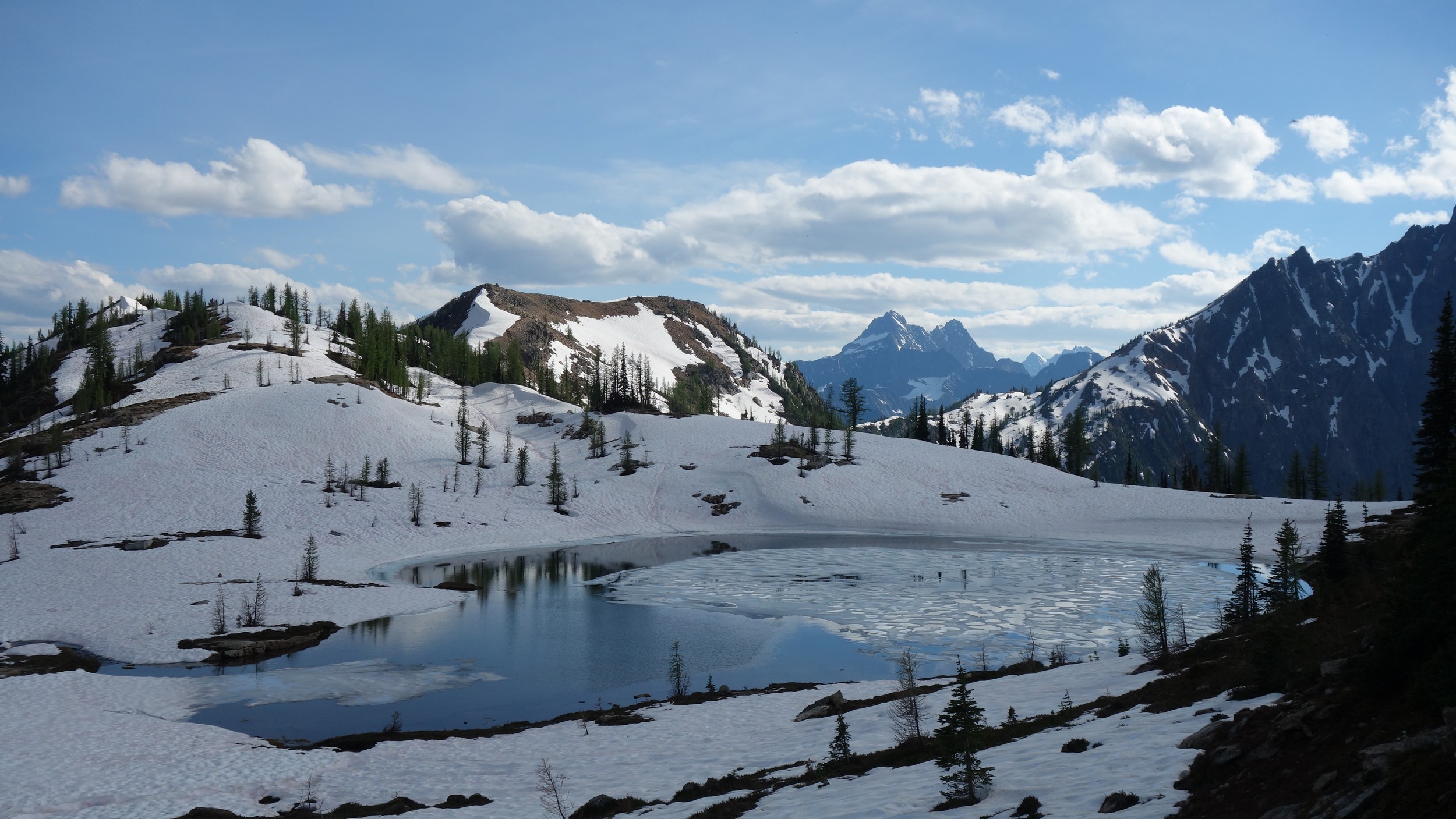 With Sunday being great, we started from Rainy Pass at about 8am and hiked the PCT to Cutthroat Pass, with the final 500 feet up to the pass still covered in snow. We were able to boot straight up to the pass without issue on the firm snow. Unfortunately I forgot my sunglasses, so I was hoping we wouldn't have too much snow, otherwise it was going to be a painful day for my eyes.