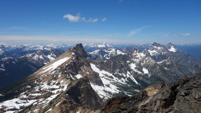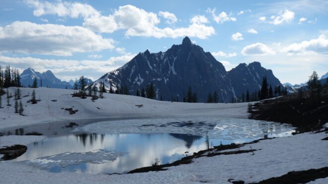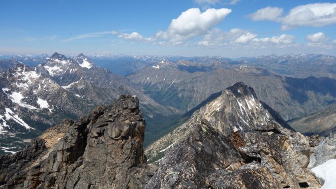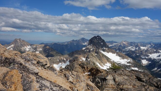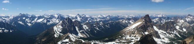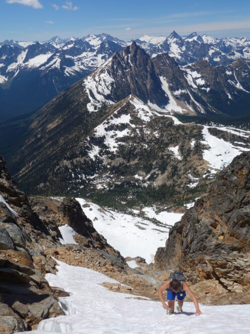 Josh and I had big plans to head up the N Cascades Highway to climb Tower and Golden Horn in a day, then climb Sinister and Gunsight Peaks over the next 3-4 days, however with the freak, unpredictable bad weather that came in Sunday night, we only did the first two.