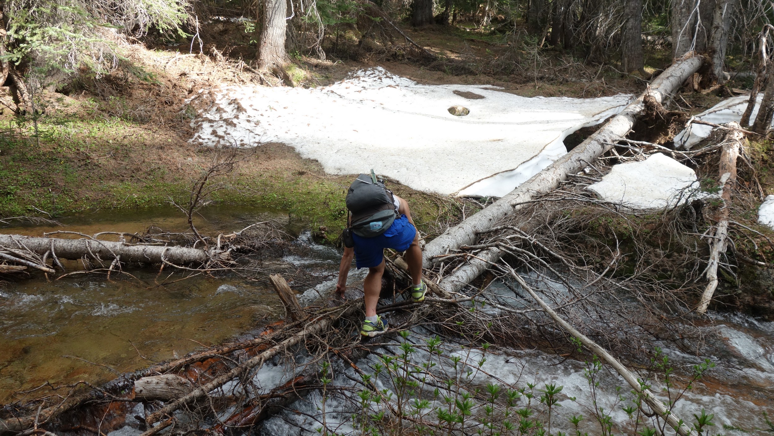 Once off that, I ran down the scree back to the lower lake where Josh was sound asleep. I had some great reflection views of Hardy in the upper lake along the way. We decided to descend Swamp Creek instead of hike all the way back around over Cutthroat Pass, and hopefully catch a hitchhike the 2.5 miles back along the road to Rainy Pass. Although the descent down Swamp Creek was very easy, utilizing logs to cross all the swampy bits, we never did find someone to pick us up so we ended up walking back up 800 feet along the road and got back to my van just as darkness was upon us.