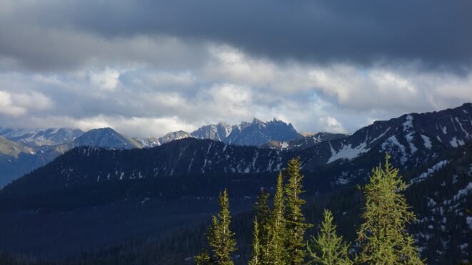 When we woke up, it was still raining so we bailed on Sinister and decided to drive back east up to Harts Pass to try and climb Mount Ballard. We ate lunch in Winthrop and one of the ladies at the Mexican place said they had 75 mph winds the previous night! Crazy!