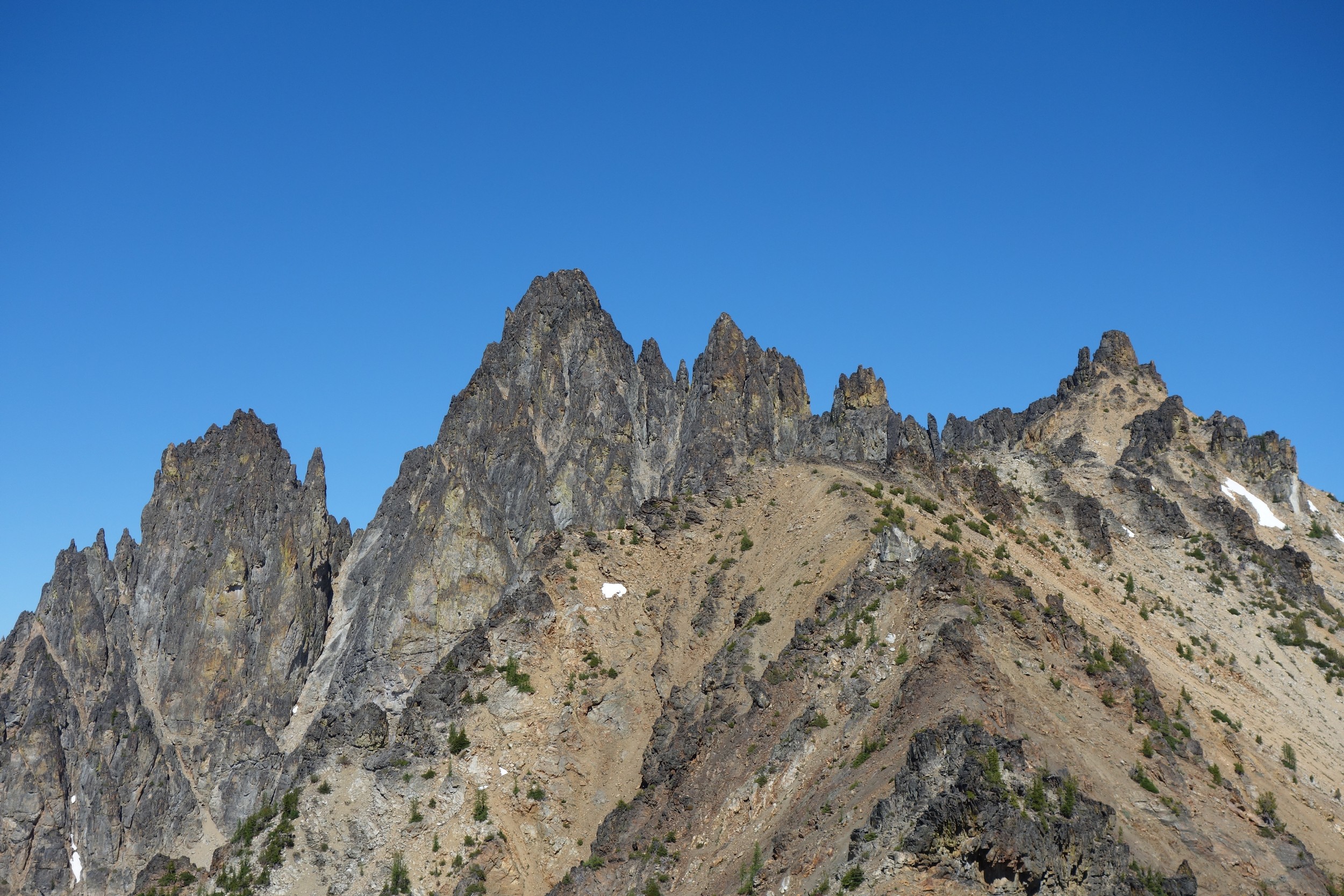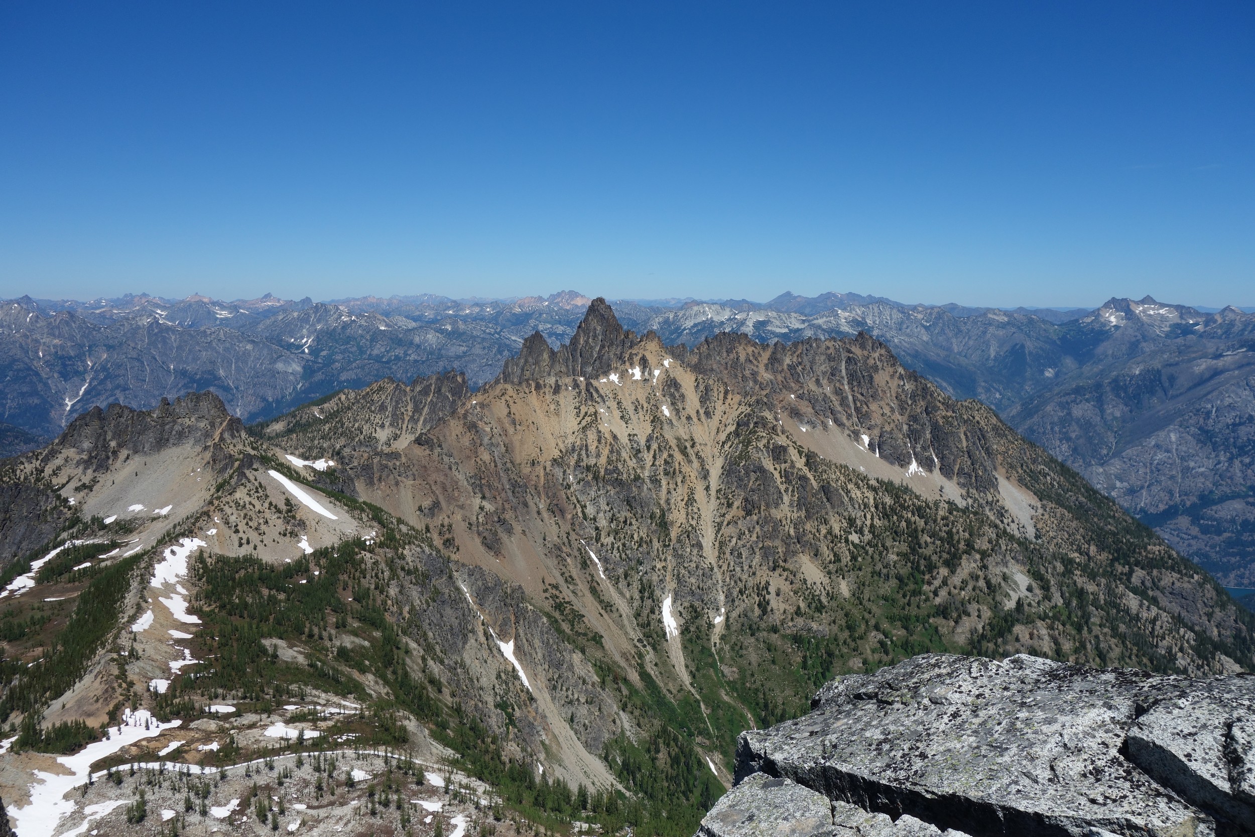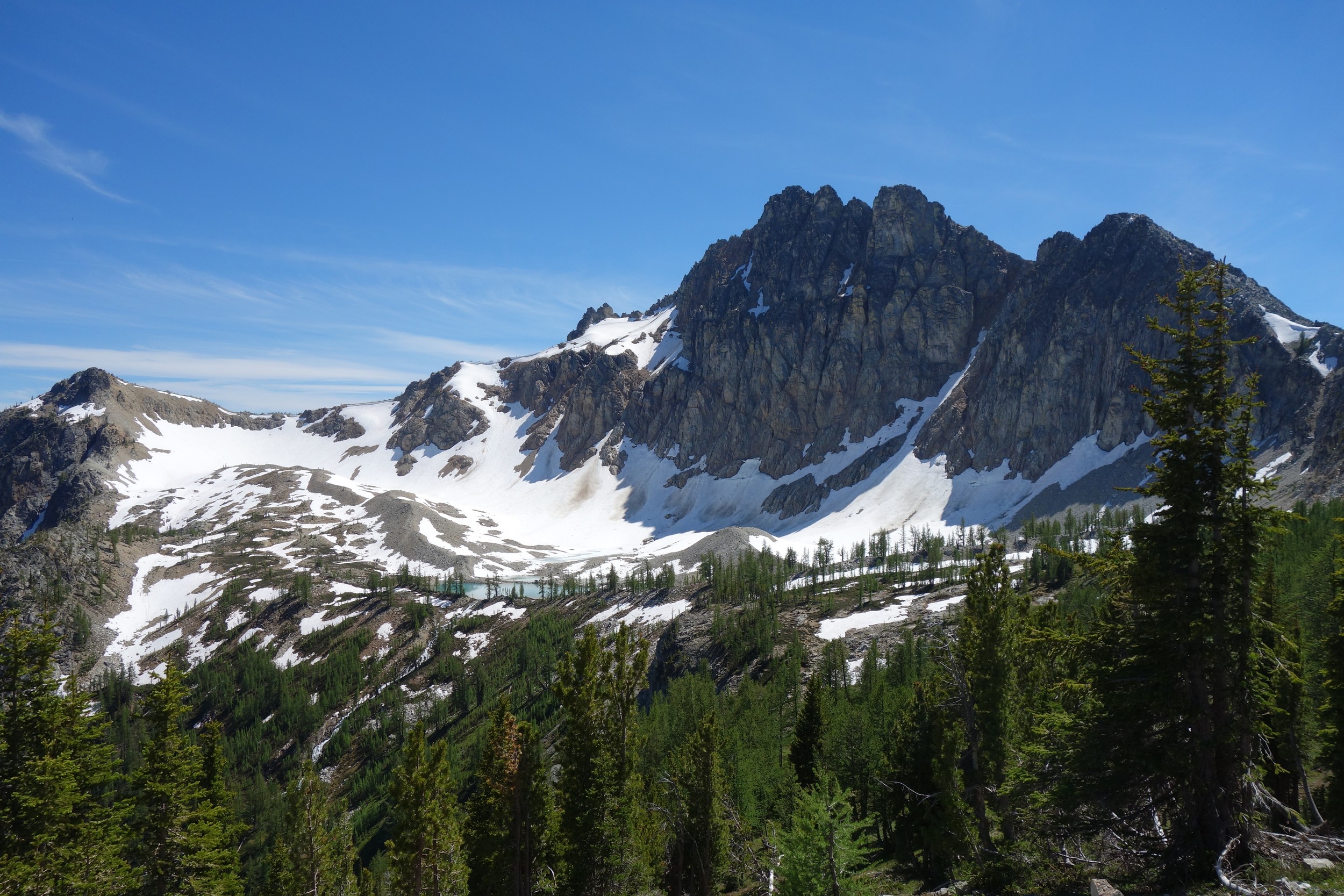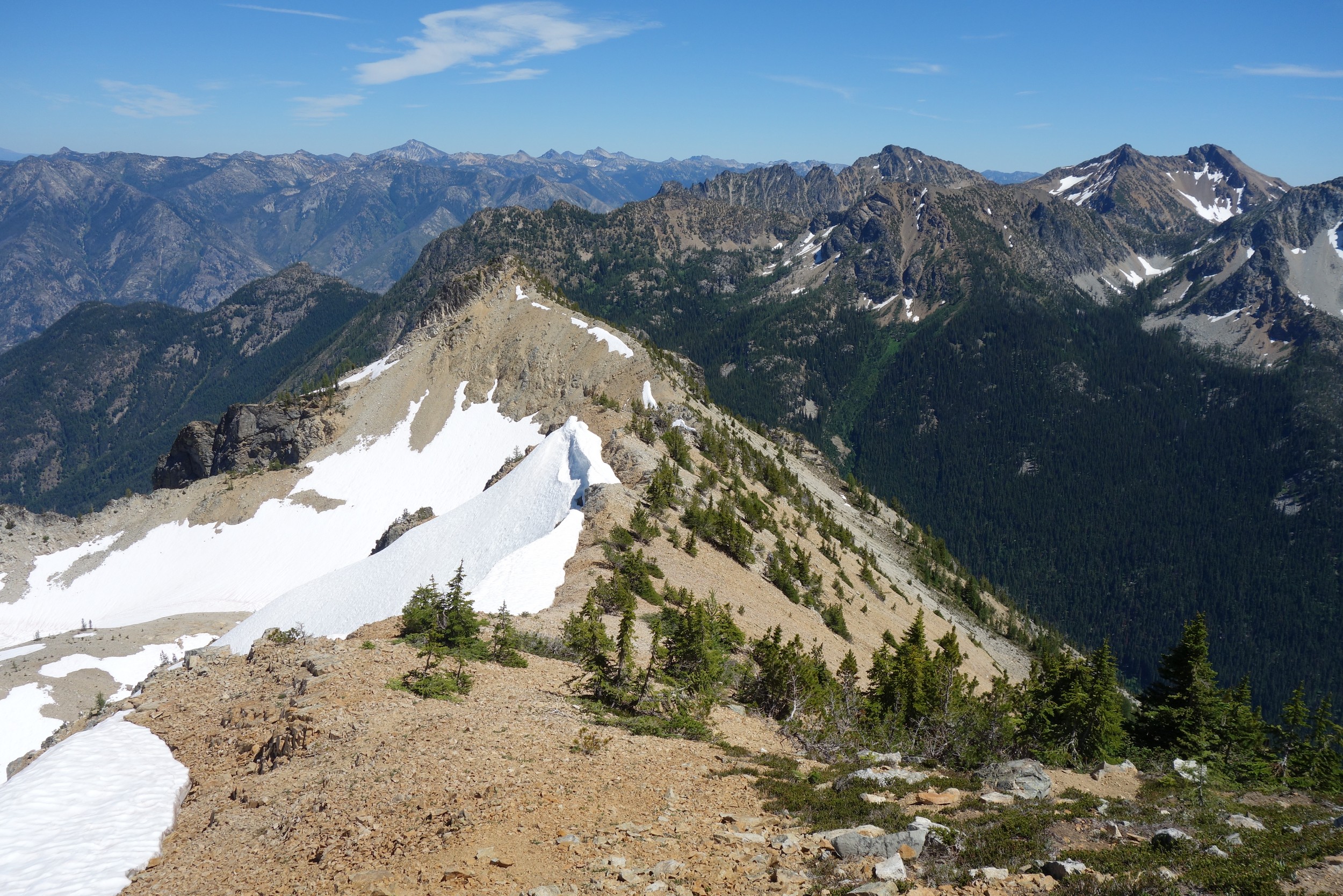 I woke early again and started hiking down the basin at 5:30. I moe or less went straight down the basin until about 6200 feet, then traversed right and crossed the small ridge that is the continuation of Tupshins south ridge and descended a mix of talus, open forest and grass until hitting bird creek where I found the Devore Creek Trail shortly after. I only had a few brushy spots to deal with, the worst of which was crossing he ridge at 6200 feet making that rightward traverse. I made quick wok descending the trail, which was mostly in good shape. The sucky part was hiking 3 miles of flat to get back to the Herlequin bridge. The switchbacks at the end were also kinda maddening. I made it to the airstrip, and crossed the bridge and quickly managed to hitchhike back to the boat landing where I had 2 hours to spare before catching the ferry back to Chelan!