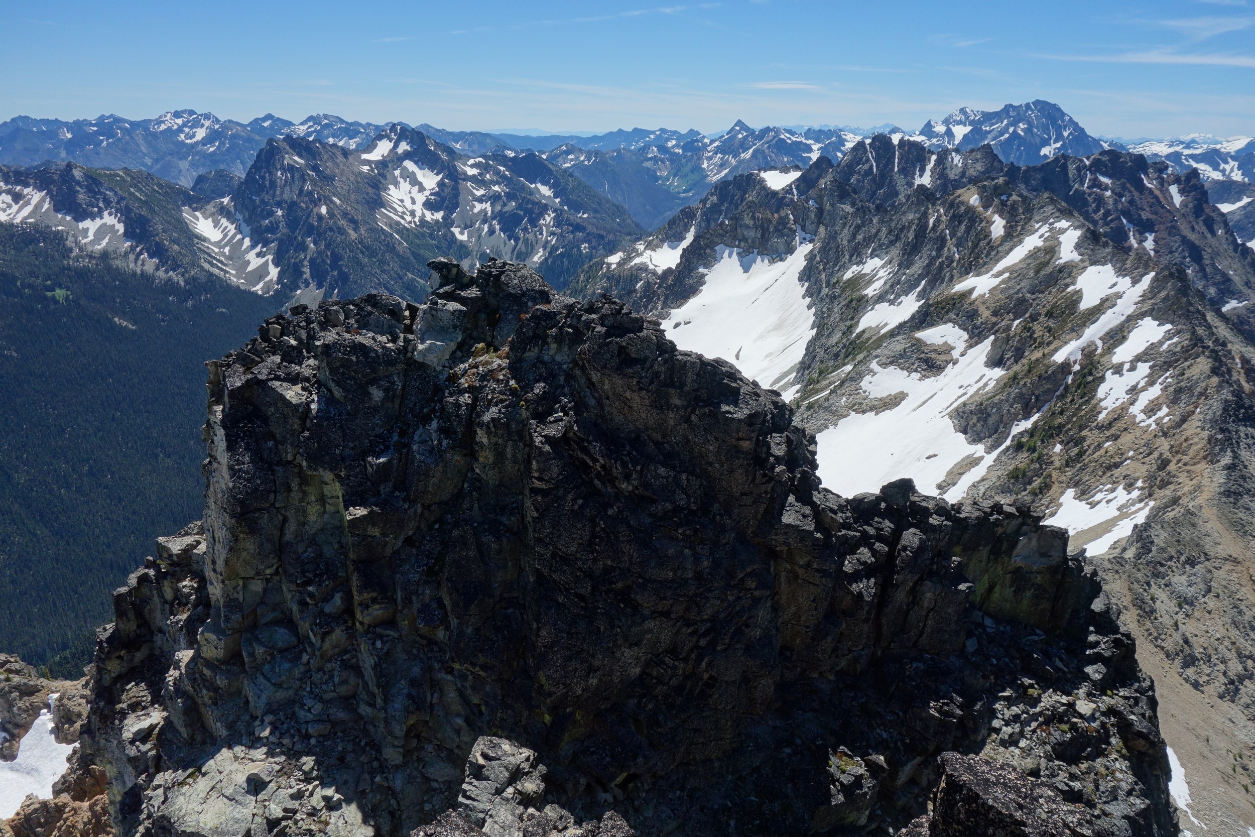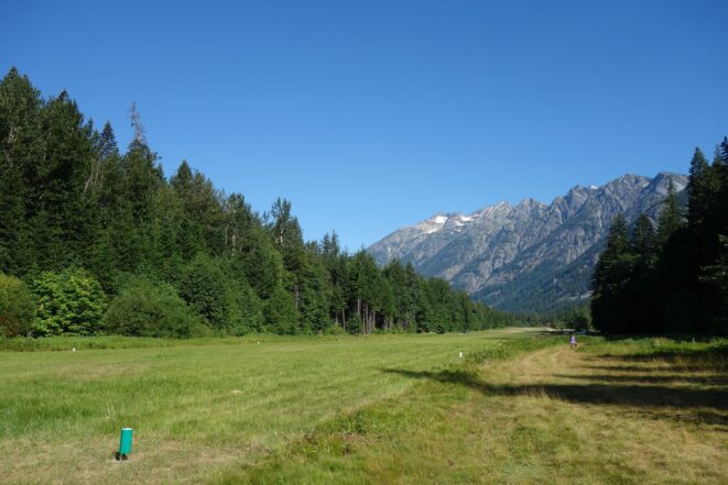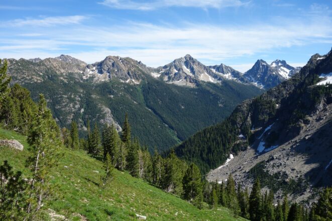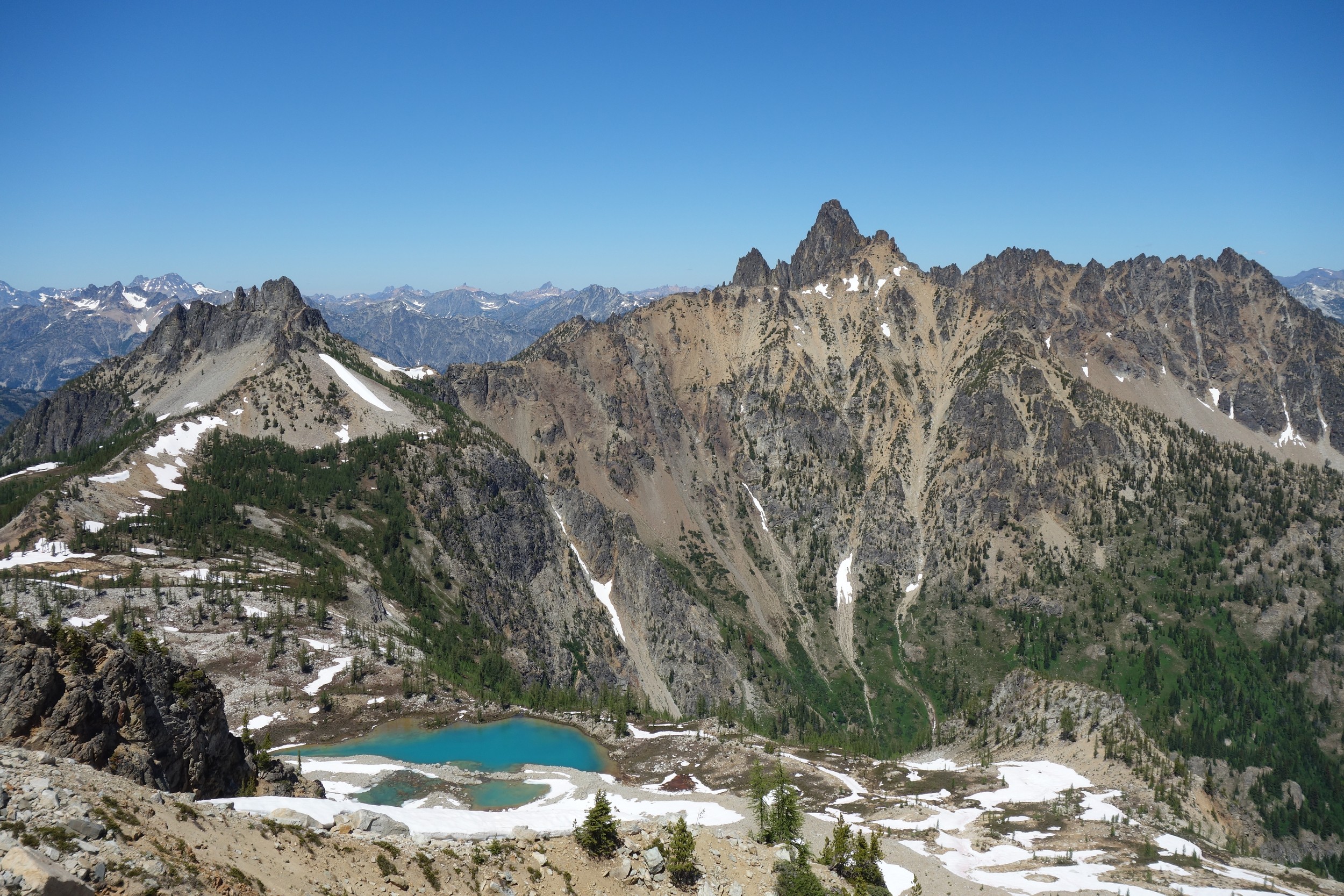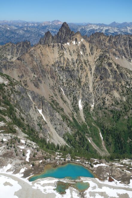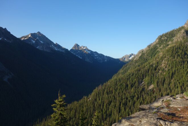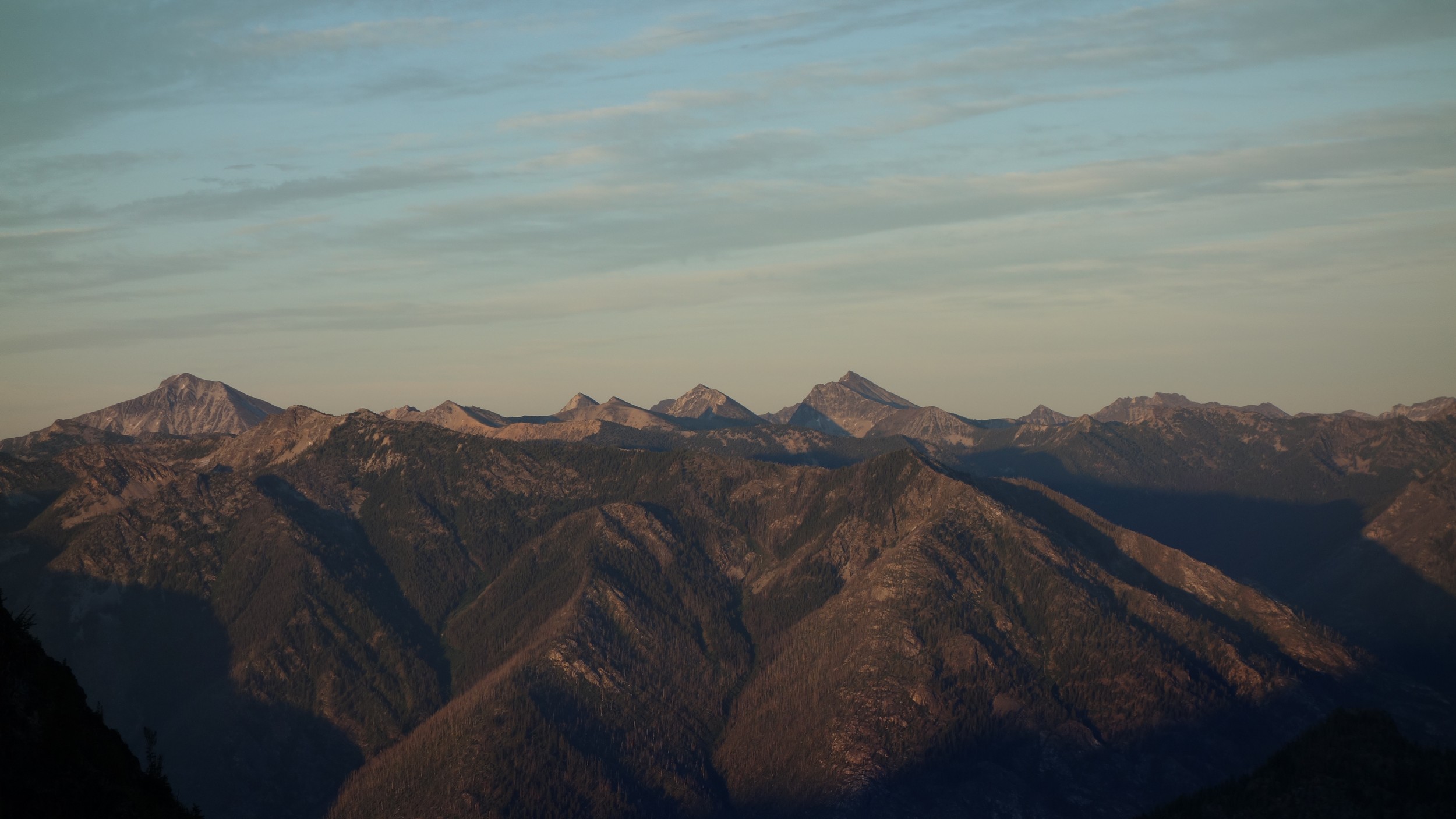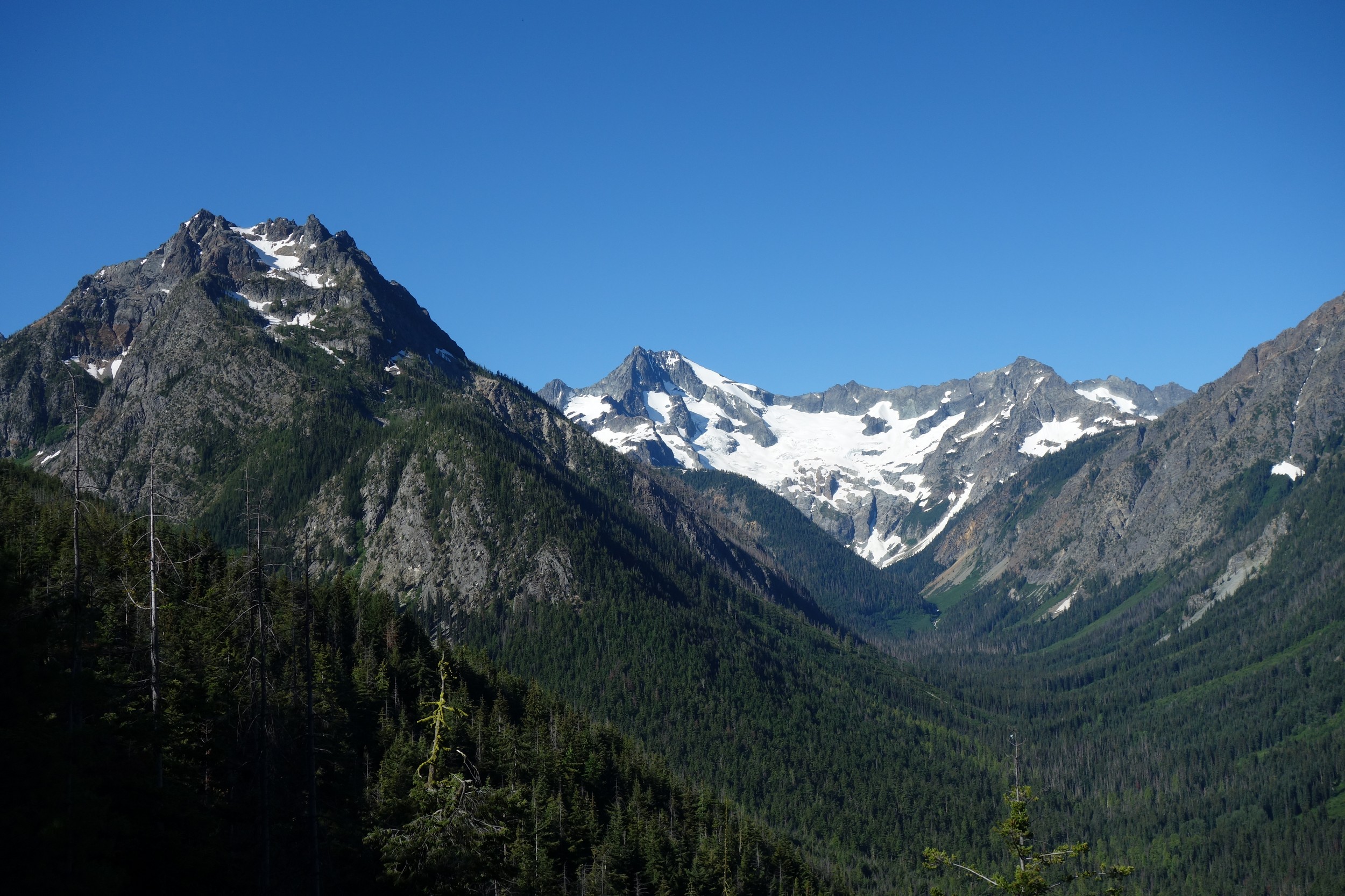 I woke early again and started hiking down the basin at 5:30. I moe or less went straight down the basin until about 6200 feet, then traversed right and crossed the small ridge that is the continuation of Tupshins south ridge and descended a mix of talus, open forest and grass until hitting bird creek where I found the Devore Creek Trail shortly after. I only had a few brushy spots to deal with, the worst of which was crossing he ridge at 6200 feet making that rightward traverse. I made quick wok descending the trail, which was mostly in good shape. The sucky part was hiking 3 miles of flat to get back to the Herlequin bridge. The switchbacks at the end were also kinda maddening. I made it to the airstrip, and crossed the bridge and quickly managed to hitchhike back to the boat landing where I had 2 hours to spare before catching the ferry back to Chelan!